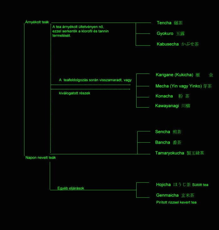 Az alábbiakban a japán tea családfáját mutatjuk be.