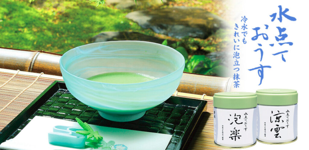 A nyári hideg vízzel elkészített matcha felszolgáláshoz külön eszközöket használunk, itt jut szerephez a finom, üvegből készült chawan, ami már látványával is hűsíti a testünket-lelkünket.
