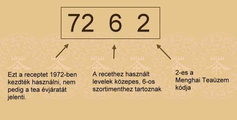 - Az első 2 számjegy a tearecept első használatának évszámát jelöli, tehát nem a tea, hanem a recept évjárata. 9856-os, vagy 9956 teát több, egymást követő évben is készíthetnek.