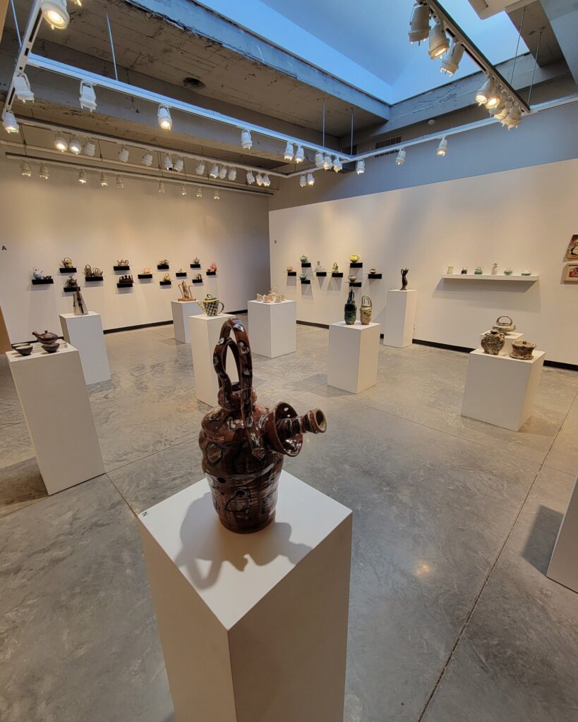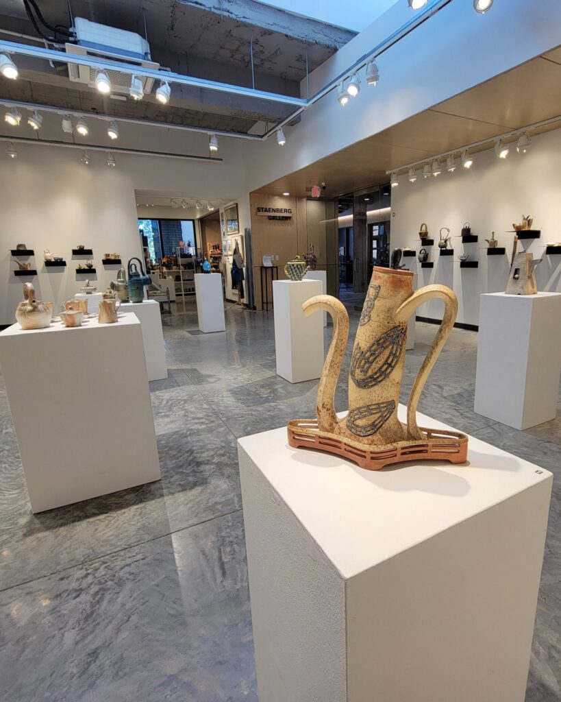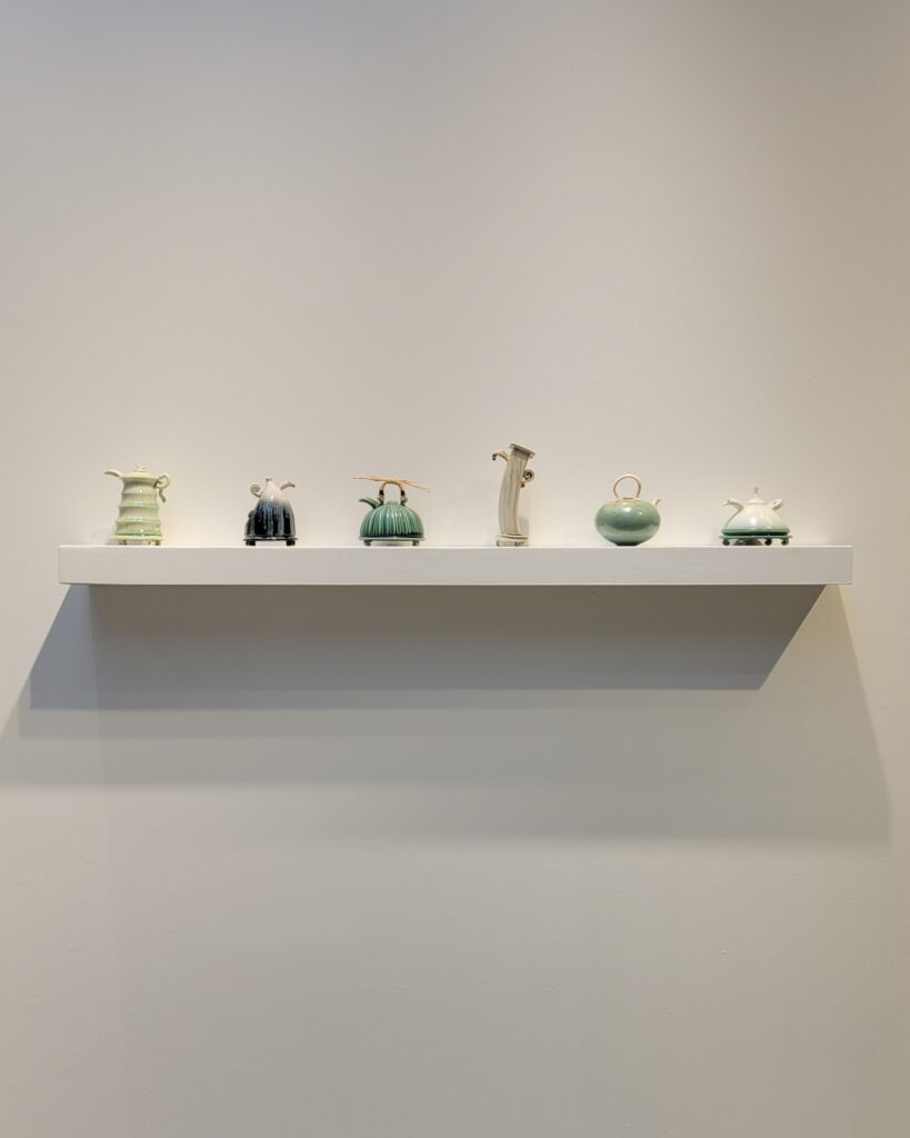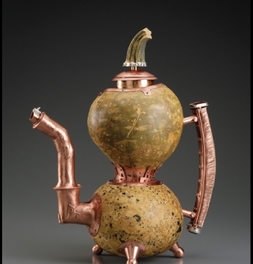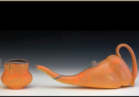 Nő készítette, ez is egyértelmű, a finom vonalvezetés mellett főleg a „markolat” árulja el. Az alkotó Yael Shomroni.  Valóban, ez egy teáskannaként viselkedő teáskanna „szándék”. De felbukkannak tárgyak, amik más tárgyak, színek, tulajdonságok kaméleonjaiként öltöznek fel, miközben funkciójukat tekintve ezek is teáskannaként viselkednek, időnként nagy fejtörést okozva a látogatónak/felhasználónak, melyik végéről is közelítsen. Mindezek egy másfél évtizedes kezdeményezés gyümölcsei, az amerikai (Saint Louis) Craft Alliance szervezésében, az idén 2025-ben 20.alkalommal megnyíló forró tea – teáskanna kiállításról. A művészek között vannak egyszerű missouri hobbyművészek és hírnevet szerzett nagy ászok, ennek ellenére, érdemei elismerése mellett nem hiszem, hogy túl nagy jelentőséget kellene tulajdonítani a kiállított, élénk fantáziáról tanúskodó, 300 és 3000 dollár értékű műtárgyaknak. Avantgarde-nak és szürreálnak már késő, többet még egyenlőre nem mutat, bár némelyik a funkcionalitás határára érve megpendíti a kétely kérdőjellé görbül húrját. Erre úgy tűnik, vezethet valamilyen út. Így messziről is gratulálunk, különösen ehhez, Robert Adams munkájához, vagy Sylvie Rosenthal teáskanna szobrához.