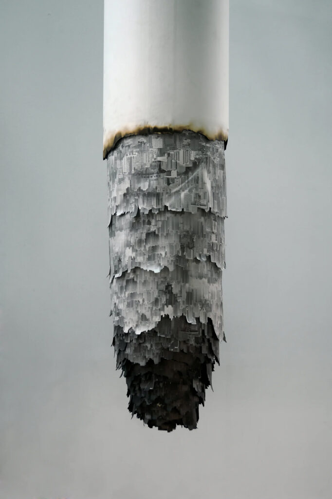 Yang Yilong munkássága más, hasonló erejű és töltetű műveket is kínál. Ugyanebbe a vonalba illeszkedik az embernagyságú installációja, a „hamvadó cigarettavég”, aminek hamuja ugyanilyen részletes fekete-fehér fotókollázsból áll össze. Egyik kiállításán egy 6 méter hosszú sárkány mászik le a falról, a híres Song dinasztiában született „kilenc sárkány tekercs” sárkányát szoborba öntve és feltámasztva. Kínában minden sárkány, még jobban, mint a hajdú, vagy a cívis sziklává merevedett toposza az Alföldön. De ez a sárkány különbözik az örökkévalóság, a termékenység intelligens állataitól. Cementből öntött, cementté merevedett szörny, élettelen kihunyt szemű emlék.
