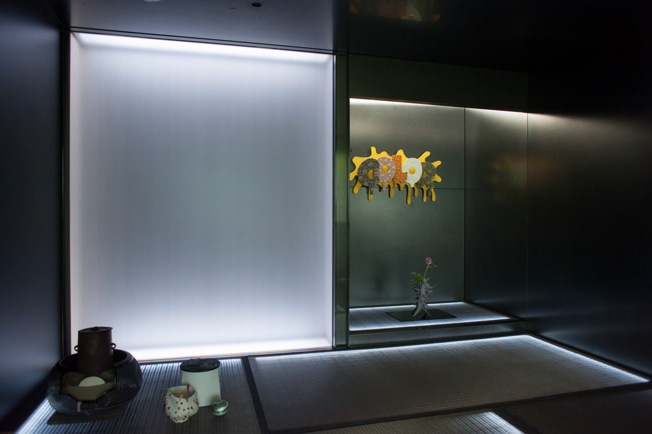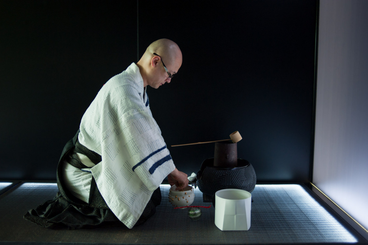 Fentebb már bemutattuk Matsumura Nobut és az ő tea szobáját, amit egy bevásárlóközpont felé emelt lakótömb ötödik emeletén szerkesztett, unortodox teás eszközökkel, vörös chashakuval, koponya határkővel, bikafejjel és ledes tatamival. Most még hozzájött egy TEDx előadás egy loop zenésszel.