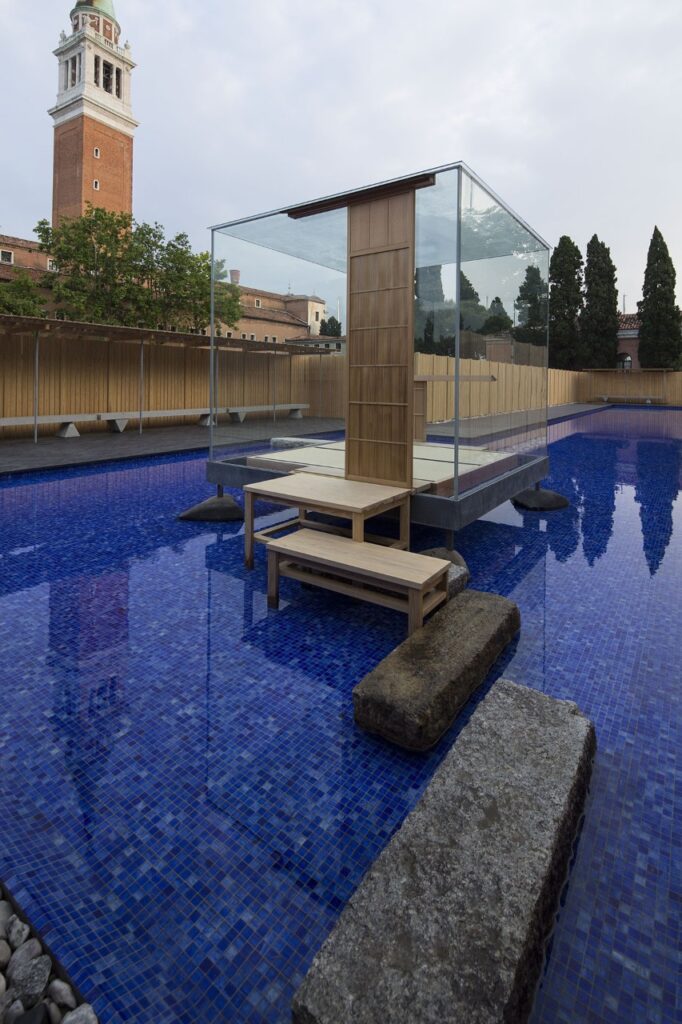 Furi dolog ez. Le kell hámozni a hírnevet, hogy megmaradjon az ember, akkor hihető lesz, az amit mond, csinál. Pontosabban, amit mond vagy csinál, azt nem tarthatja fenn csupán a hírnév felhajtóereje. Úgy értem, aki valaha is gondolkozott teaház tervezésen, annak biztosan megfordult a fejében, hogy határ nélküli határokat jelöljön ki. Persze, számos ilyen példa és terv és kísérlet van. Bizonyos, hogy sokaknak felmerült, hogy az áttetsző határokat üveggel valósítson meg. Persze. Biztos sokakban felmerült az is, hogy lefényképezzék az üres horizontot és odaírják, hogy Ligur-tenger. Mintha nem lehetne akármelyik. De végül Sugimoto fényképezte le és csinált belőle sorozatot. Végül ő készítette el az üveg teaszobát. Hozzáteszem, hogy nem hívja teaháznak, hanem üvegszobának, tea nélkül. De a leírásban nem marad adósunk a teával kapcsolatos hivatkozásoknak. A tervet egy az olasz üvegművességet ápoló olasz alapítvány, a Giorgio Cini Alapítvány finanszírozta, ennyi a kapcsolódás Velencéhez, saját honlapja is van itt rajta sok más művészeti tervvel, kiállítással.