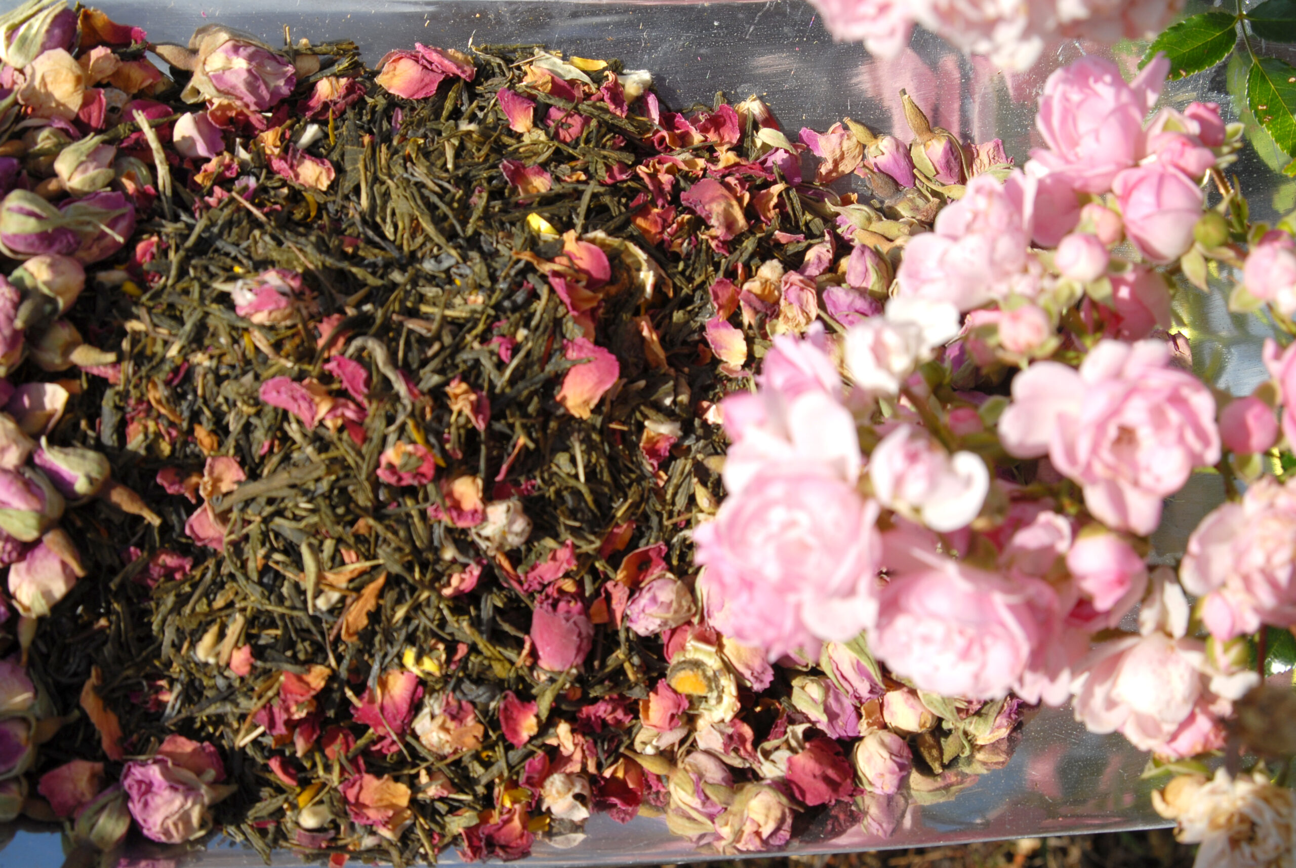 Mi, innen Magyarországról, a tisztító, virágaiban gyönyörűséges sakurát házasítjuk a congwoo muskotályos rózsájával, japán mokoto senchán.