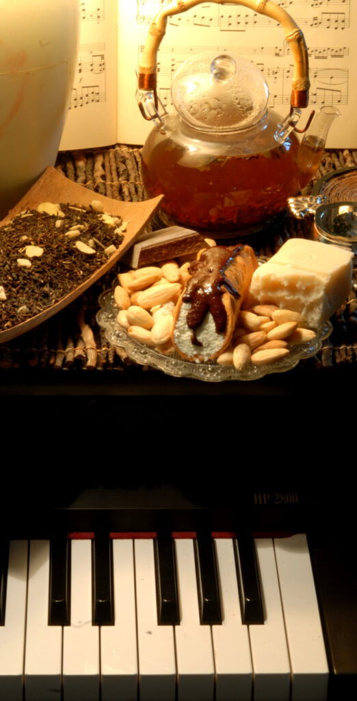 Wagner teája assami fekete teából, marcipánból és mandulából áll aromával. A marcipán elolvad és zavarosan édesre lágyítja az amúgy is finom teát.