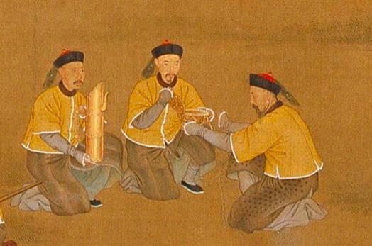Qianlong 14.évében (1749), egy vadászat során Qianlong császár leült sátra elé és szárnysegédjeit, udvaroncait szemlélte, amint a zsákmányt feldolgozzák. Az udvari festő, más dolga nem lévén megörökítette az emlékezetes pillanatot, ami polaroid pontossággal hagyta ránk, amint a császár egy csésze finom tejes teával enyhítette szomját.