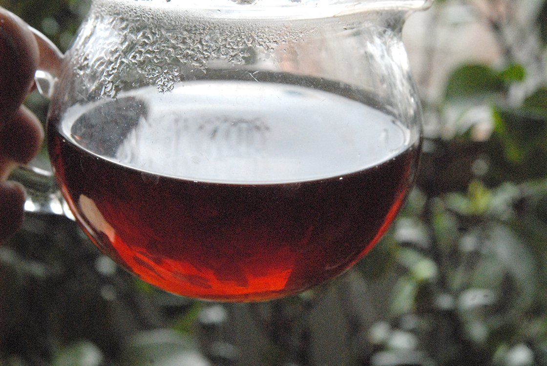 Félig érelt, nagy levelű Liu Bao bambuszkosaras tea 2005-ből. A recept neve régi időkbe visz, ez a 3607, nagy, egész levelekből és szárakból álló teljes tea. Az öntet mélyvörös, bordó, savanykásból hamar édesre vált, selymes, finom utóízzel. Jellegzetesen öreg, érlelt teának adja ki magát, 10-12 éves shu puerht idéz nem véletlen, hogy Guangxi, ami ennek a teának a szülőföldje, a legnagyobb hamis, érlelt puerh tea piac is.