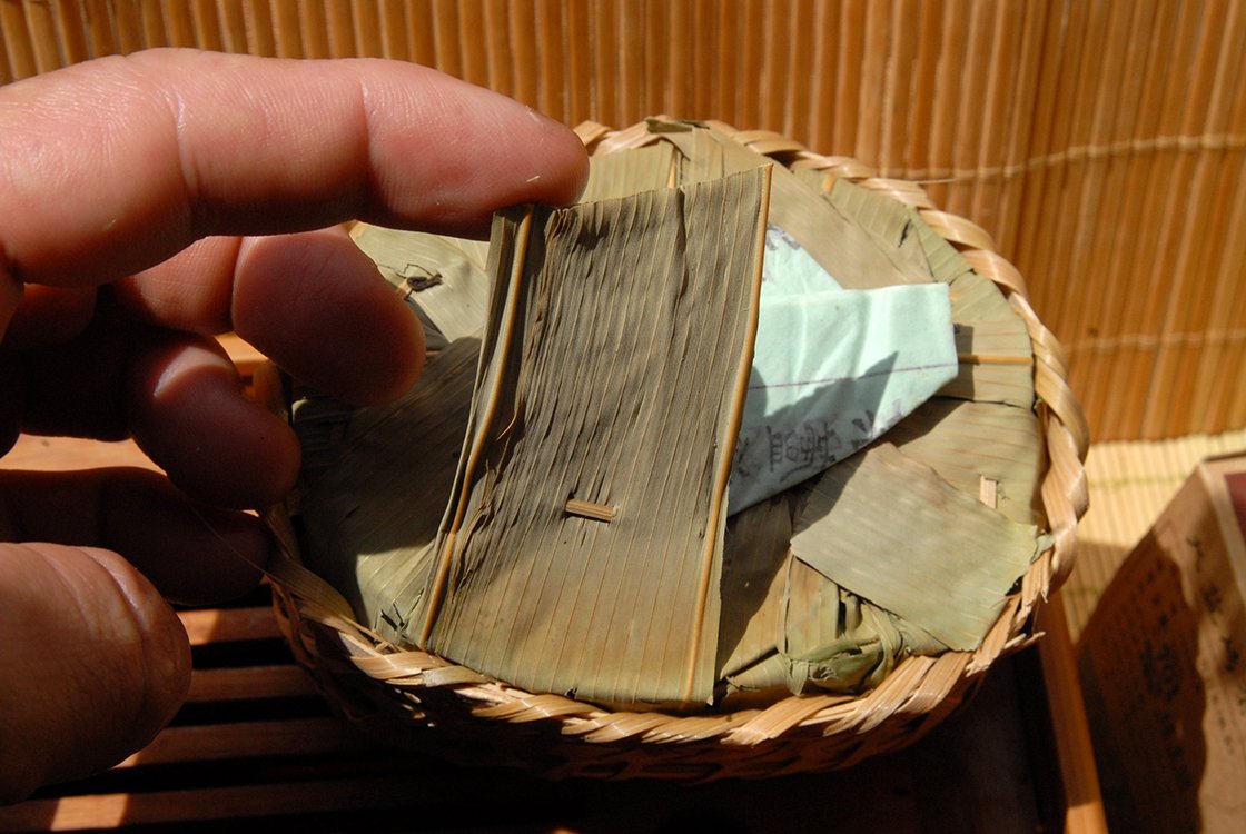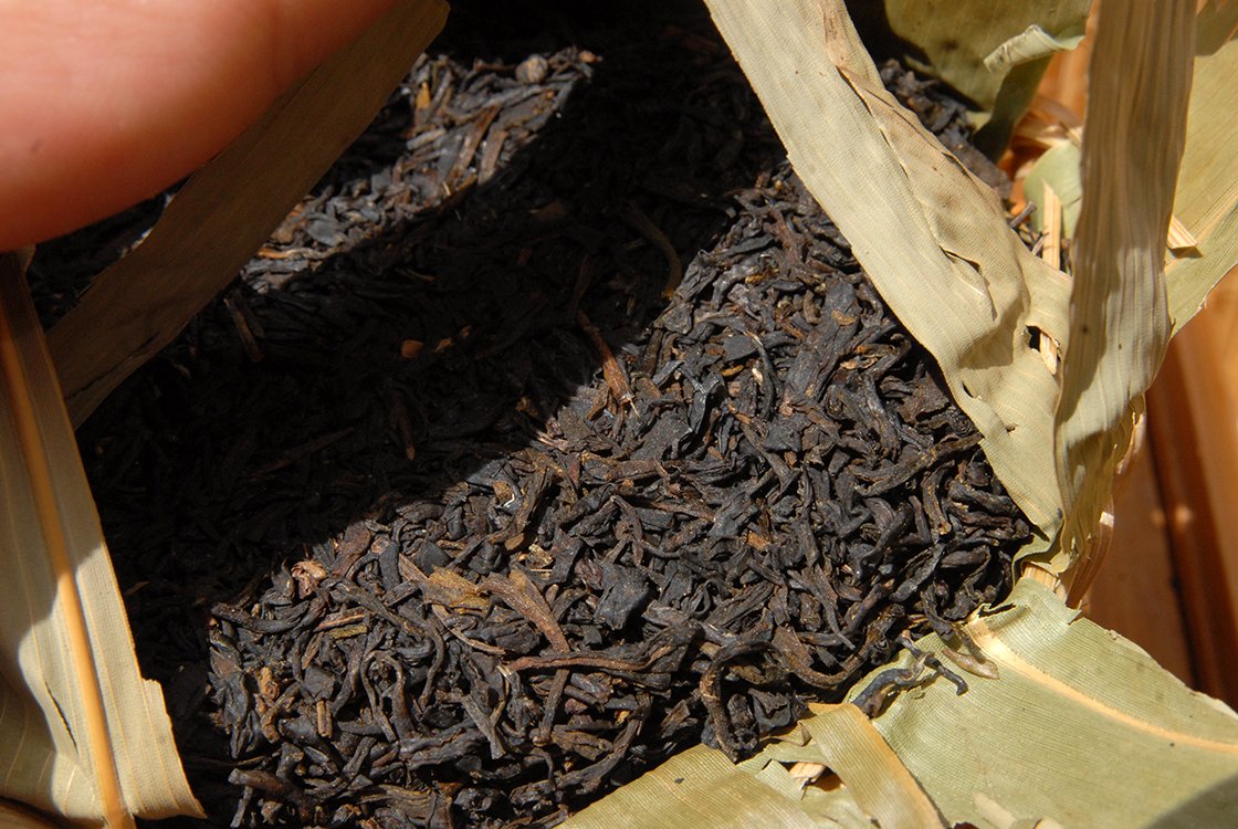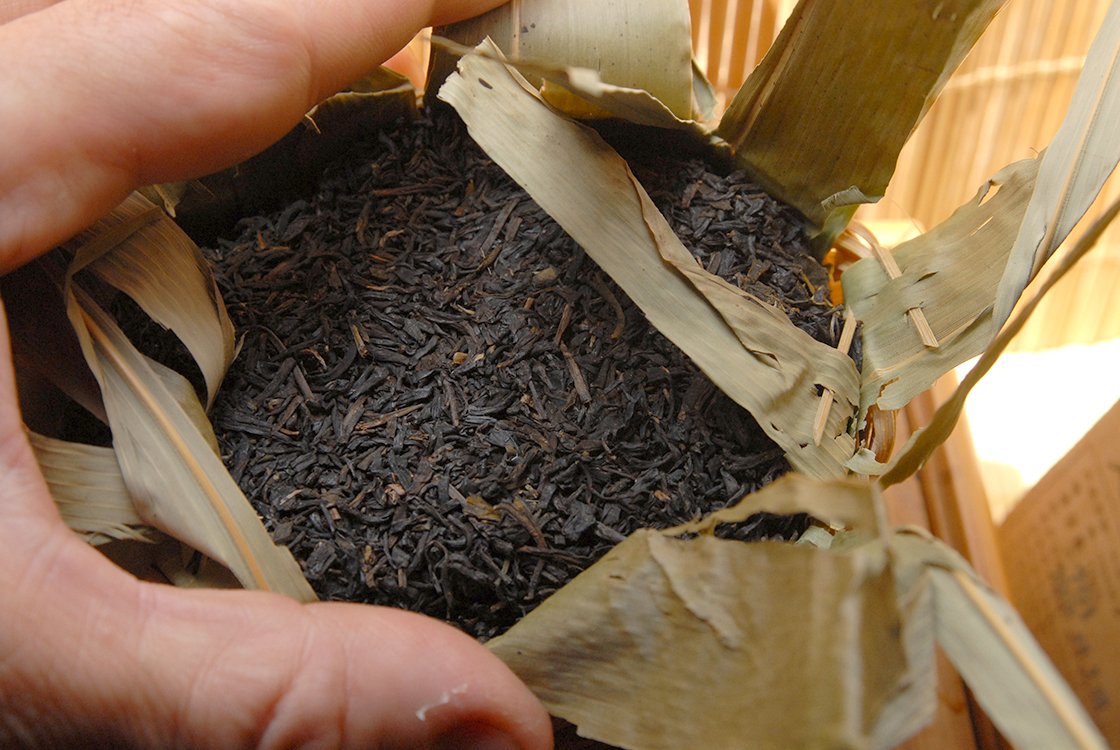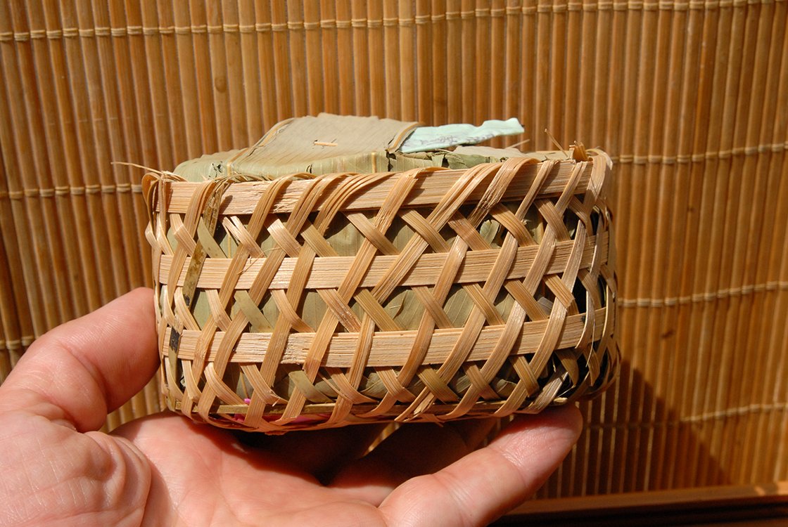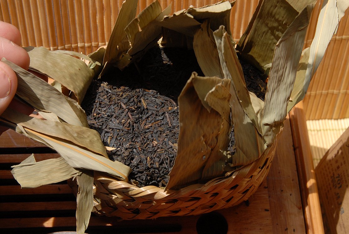 2007-as gong ting 宫廷 minőségű fiatal levelekből készített első osztályú hei cha. A gyártás évében rendeltünk a gyártól néhány nagy 40 kilós kosárral. Érdekes módon nem az európai vámnak lett gyanús, hogy mi is ez a nagy bambuszkosárba csomagolt sok kis bambuszkosár, hanem már a kínai vám is szétszedte, vélhetően drogot keresve. Mindenesetre szerencsésen megérkezett, azóta fogy. Az eleje még élénk, szinte mar, zsibong, utána kesernyés alapon bomlik szét, a vége már érett, édeskés íz. Valamiért úgy alakult, hogy egyszer jelentősen csökkentette valamilyen légúti bajom tüneteit, innentől kezdve családi gyógyteává vált. Nem tudom, hogy valóban az-e, vagy csak a hit hatott, lehetséges az is, hogy az érlelésben résztvevő mikroorganizmusok segítettek . Az ilyen 8-15 éves teákat félig érlelt teáknak hívjuk. Ennyi idő alatt már kialszik a kezdeti csípős íz és diólevél karizmát kap a tea, továbbá jelentősen édesedik. Egy tapasztalatlan teaivó ezt az édességet talán keserűnek érzékeli, de a 10 éven felüli hei cha teák már vitán felül csak édesek. Egy egész forma 250 gramm súlyú, bambuszlakattal van lezárva és jól érik. Finom, édeskés, 8-10 alkalommal felönthető tea, ami még sokat fog változni.