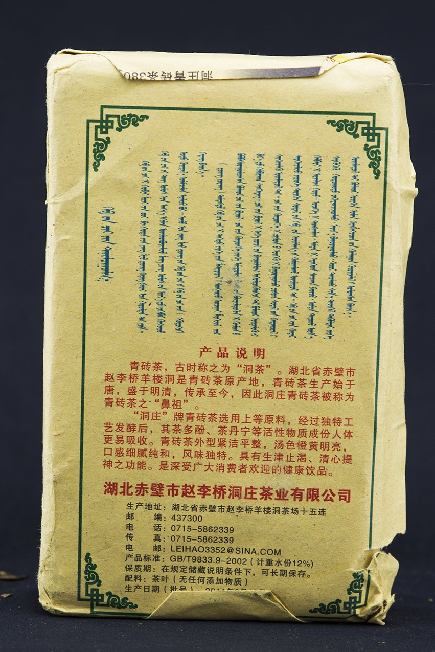 Kékeszöld tea, eredeti nevén  „Dong Tea” Yangloudong, Zhaoliqiao, Chibi város határából Hubei tartományból. A zöld teatéglát még a Tang dinasztiában kezdték gyártani, erről szól Lu Yu teáskönye. A „Dongzhuang” magas minőségű tea alapanyagot használ a préselt teák előállításához. A fermentáció, többszörös gőzölés szárítás olyan terméket hoz létre, aminek jótékony összetevőit könnyebben fel tudja venni a szervezet.
