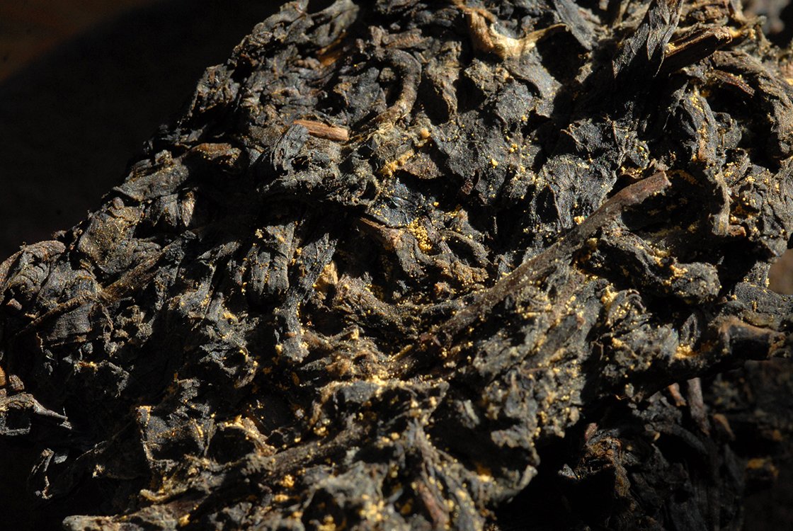 eurotium cristatum, kínaiul Jin Hua 金花 arany virág, ami teakörökben és a hagyományos orvoslásban igen nagyra tartott jótékony hatású mikroorganizmus.