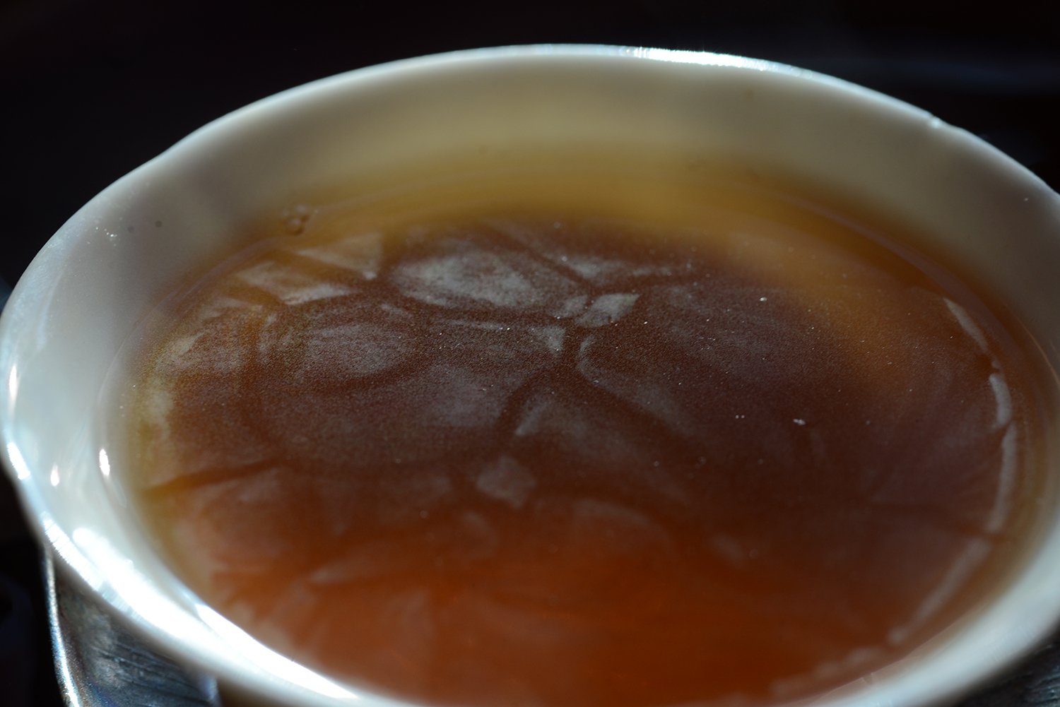 Jelleg: érlelt, arany virágot is tartalmazó hei cha sötét tea
