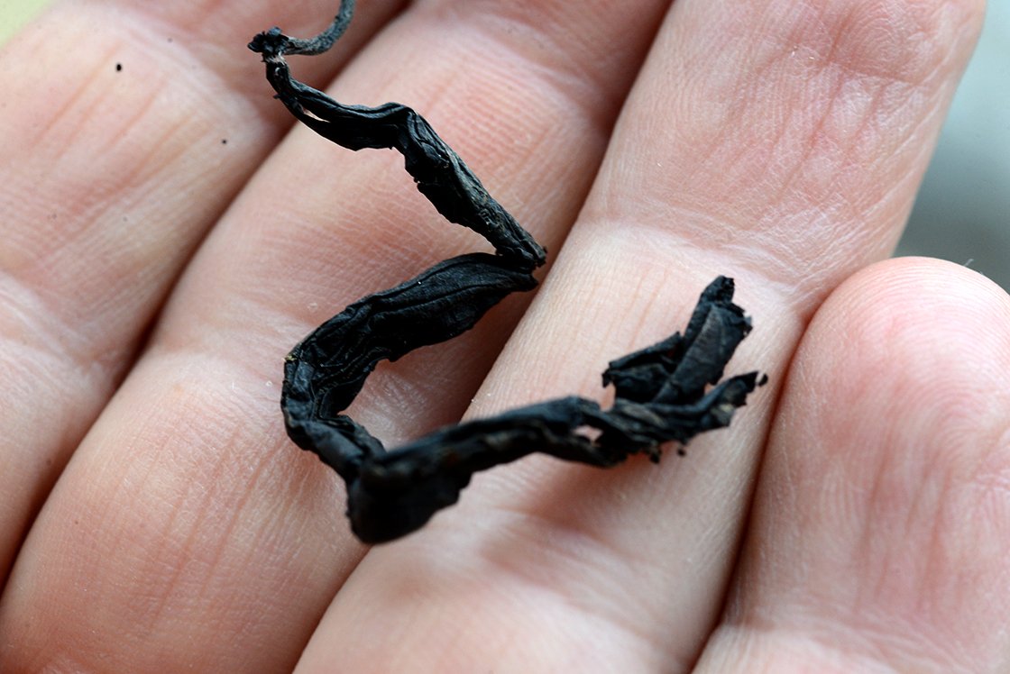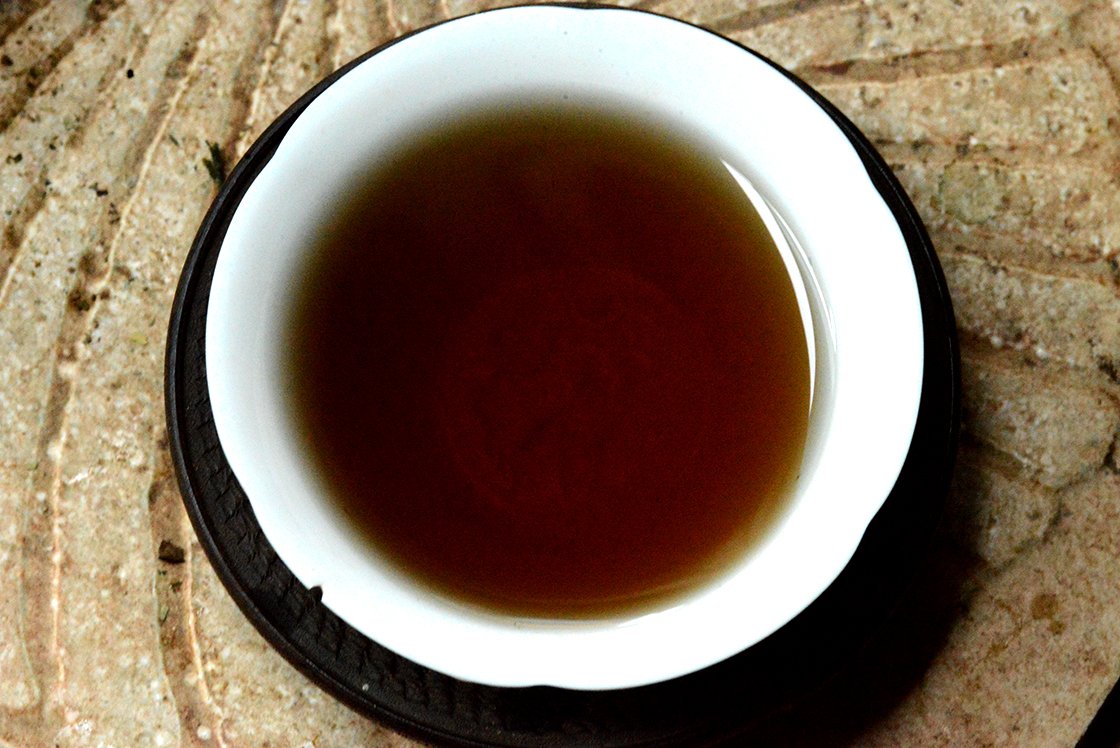 A tea szürkés barna öntetű nedves avar, gomba illattal, nagyon édes.