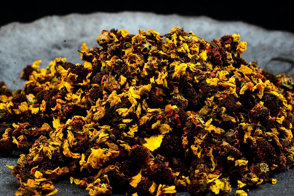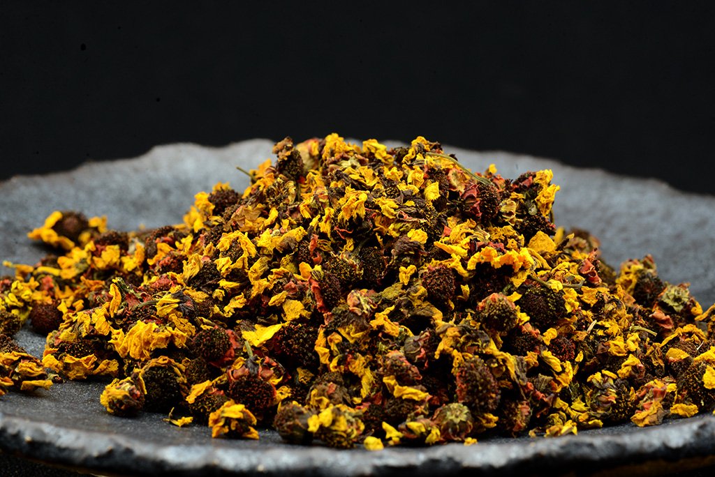 A Kunlun.hegyi havasi krizantém, avagy Xue Ju Hua Cha 雪菊花茶 bájos, finom, kiegészítő, vagy magában is fogyasztható herbatea.