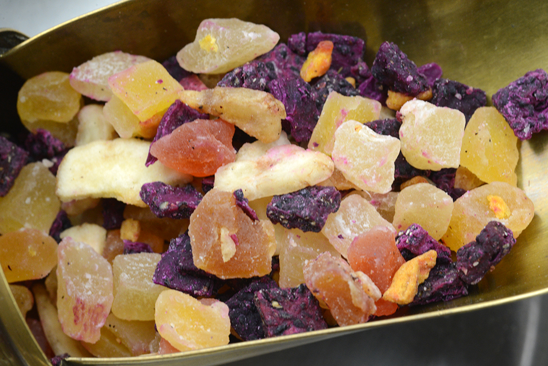 Lágy, édes, trópusi ízű, újhullámos gyümölcstea. A teát alkotó szárított gyümölcsök közül a banán és a papaya, mézet, kókuszolajat és cukrot tartalmaz.