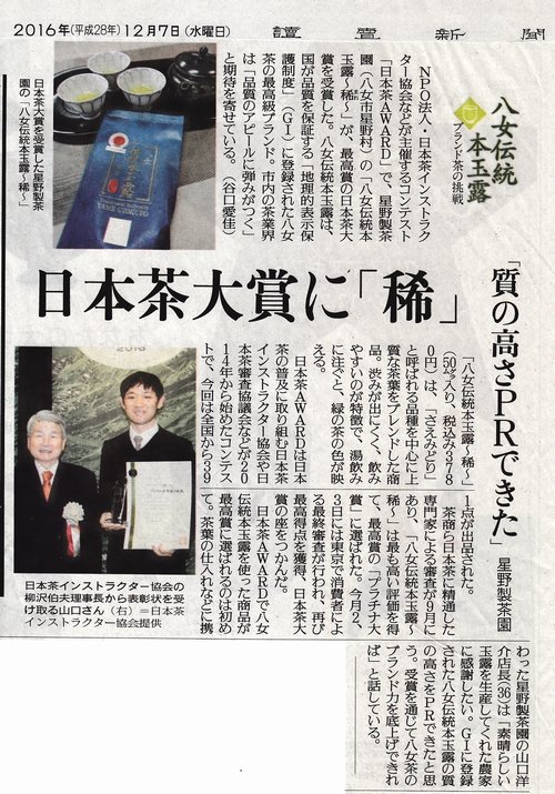 2025-ben a Fukuokai tartományi teaverseny gyokuro kategóriájában nyert. Miután Fukuoka Uji mellett a legjelentősebb gyokuro termő vidék, ez a díj is sokat jelent.