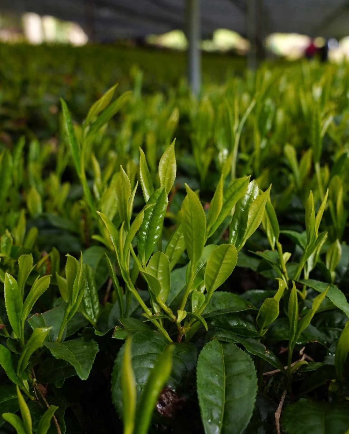 A teaültetvény, ha elkezdik letakarva művelni, egyre kerekebb leveleket produkál.
