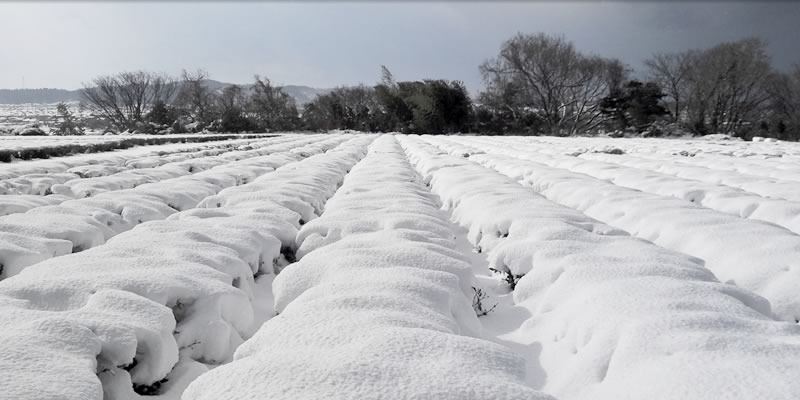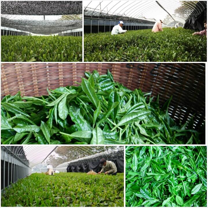 A lentebbi képeken látható a birtok.  A telet követő hetekben lehangoló képet festenek a teafák, de ez csak a látszat.  A teát eleve úgy tervezik, hogy a felső, esetlegesen elfagyó ágak védjék az alattuk elterülő ágakat. Ezeket aztán rügyfakadás előtt lemetszik, zöld utat adva az új teának.