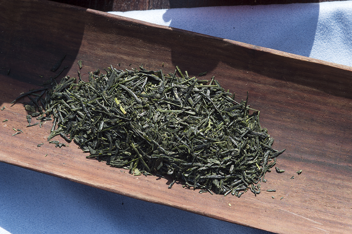 A Kanbayashi kínálat legjobb senchája már a gyokuro csomagolás ruhájában. Van még két drágább sencha a Kyo Nishiki 京錦 és a Kyo Kaga 京雅, ezekkel együtt az Aioi már gyokuro szerű teák az elegáns sencha és a Horai feletti kategóriájában. Kékeszöld tea, hmmm gyanús, hogy némi asamiya tea is lehet benne, de az íz igazi Uji tea, leginkább az Unjyo és a Choyozan személyiségét idézi Selyemfátyol alatt élénk, néhol fájdalmas érzések..