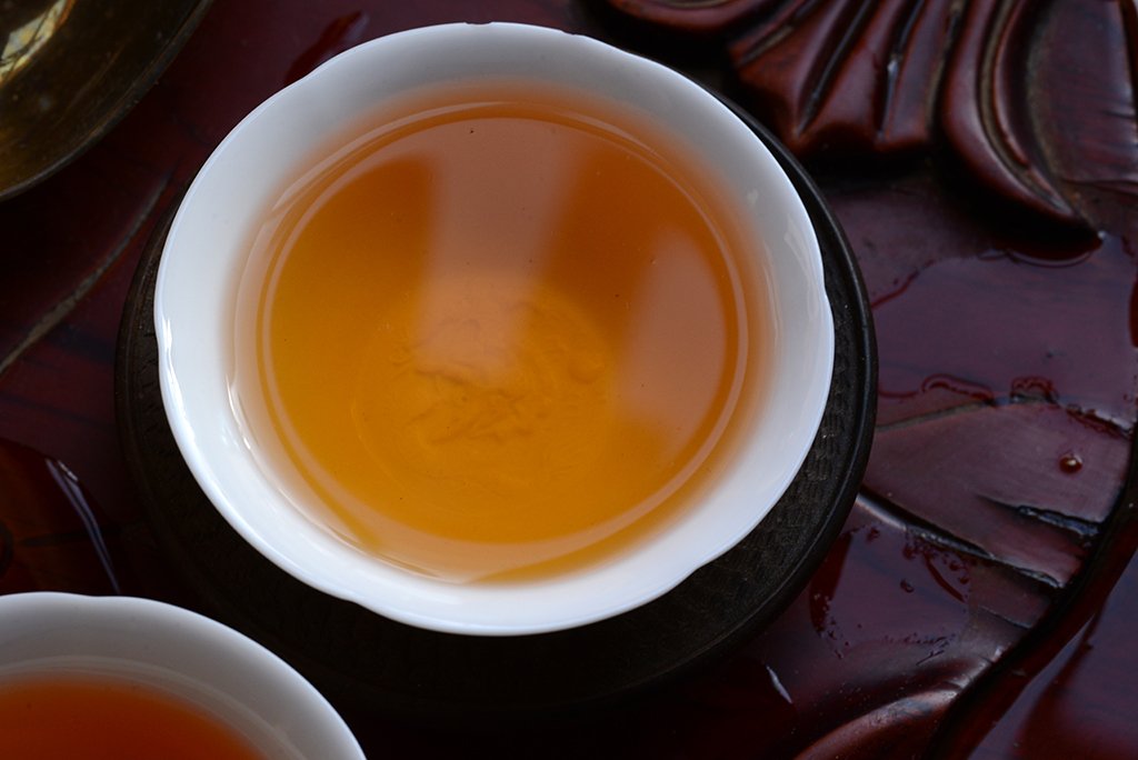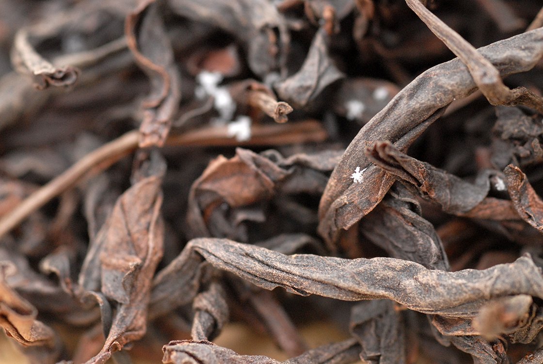A Tie Luo Han erősen virágos, virágosan erős, igazi Qi tea. Egyszerre élvezhető finom, barackos, muskotályos bája és a földből feltörő teába kalickált erő. Lehet szép felöntéseket készíteni vele, de ez a wuyi teák közül a legalkalmasabb az eredeti gong fu cha idejének kipróbálására. 4-5 felöntés egyenként 3-4 percig totális ízeket és felfrissülést ad. Az itt látható tea is jól mutatja, mennyire megtévesztő, amikor sötét wulongról beszélünk, ez a tea is éppen hogy eltáncolt a zöldből, máris megállították, minden levélen sötét csík mutatja a besütés nyomait. A gong fu chát kezdd a Feng Huanggal, folytasd a Tie Luo Hannal, ez a virágos út és ennél jobb nemigen lehet.