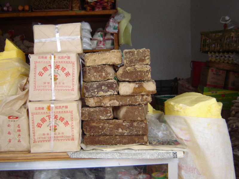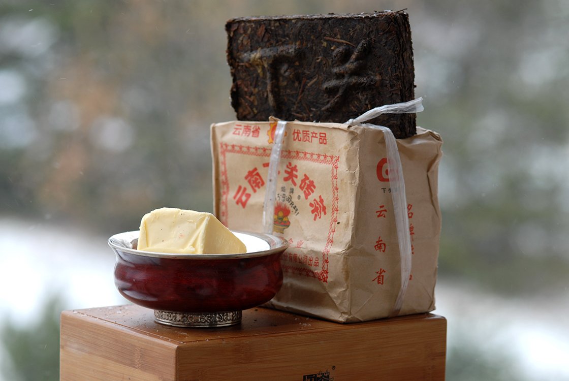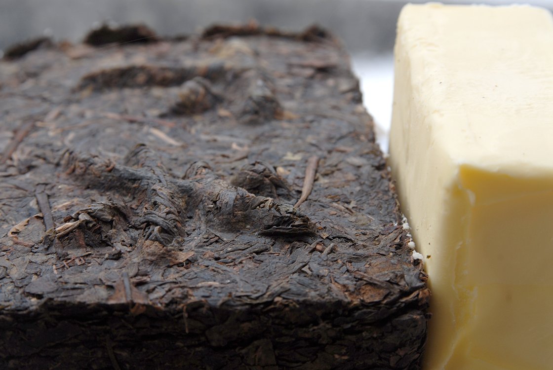 A képen látható zöld (sheng) pu’erh  a tibeti jakvajas tea, a po cha alapja. A felöntött teát jakvaj, tömbsó, némi kandiszcukor, pörkölt kendermag, és árpaliszt szolgálja ki. Íze erőteljes, finom levesíz, rendkívüli módon stimuláló. Életben tart.