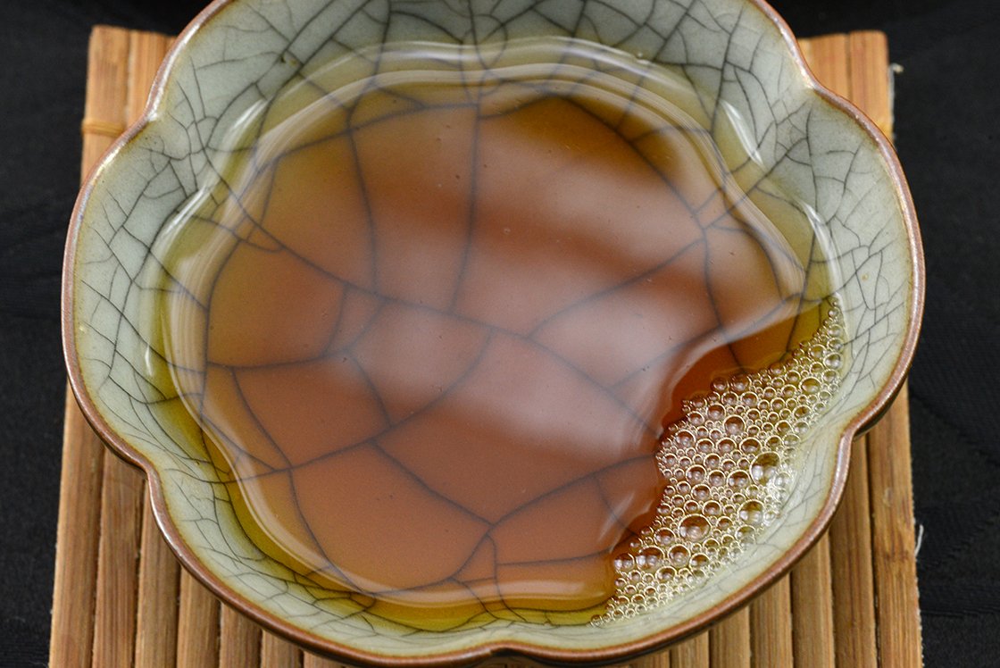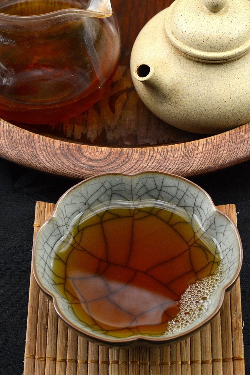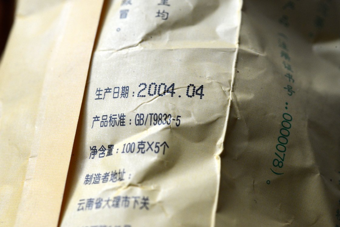 2000 előtt a Xiaguan teái a CNNP logója alatt jelentek meg. A 2000 utáni időszak első és legemlékezetesebb teája az aranyszalagos tuocha csak pár évig élt. 2003-ban a fenti papírban, a legalul látható műanyag csomagolásban mutatták be a cég daru márkájának te-ji, azaz különleges minőségű (special grade) tuocháit. Ez a második évad 2004  Te Ji teája, amit 10 évig Malajziában érleltek, ami jelentősen előre mozdította a mélyülését, érését. Összességében nem jobb, vagy rosszabb, mint az eddigi etalon 2005-ös tea.  Amaz száraz érlelés, ez pedig azon kívül, hogy maláj trópusi, még nedves is Emiatt erős tanninos alappal indul és mintegy 10 felöntésen keresztül egyenletesen tartja is a formáját, onnantól viszont már nincs kedvünk a hígabb változatokhoz. Szánkban az eleje kifejezett, utána egy mély űr következik és némi kesernyésség, majd a nedves édeskésség. Aki szeretne mély, öreg teákat kóstolni, annak jó választás, de a 6 grammos szabályt itt tényleg érdemes betartani.