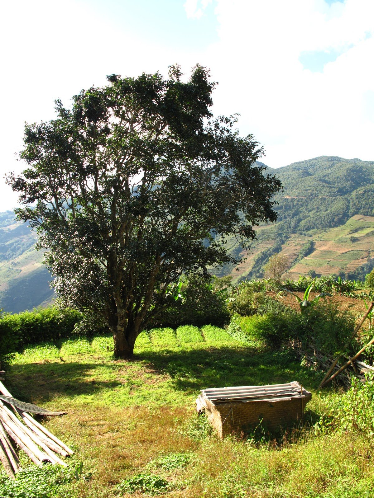 A termőterület központi része a Bang Wei Shan 邦崴山, ami a Föld legértékesebb, ős tea példányainak ad otthont. A „rekorder” itt egy 12 méter magas, a törzs alján majd másfél méteres törzsátmérőjű 1300 év korúra becsült, valóban matuzsálemi, egyébként igen jó egészségnek örvendő példány, ami ezzel korántsem a legnagyobb és legöregebb teafa Yunnanban. Ez a tea mintegy 100 kg nyers levelet szolgáltat évente kétszer. A körülötte kisarjadt, szintén dédapa korú tealiget adta 2005 tavaszán ennek a különleges teának a nyersanyagát. Összesen 1000 Kg össztermést préseltek 250 és 125 grammos lepényekbe. Ez a tea a vad puerh teák esszenciája, az egyik legjobb fellelhető vad sheng puerh. Első kóstolásra, mint minden nagy formátumú tea, szolíd, kecses ízeket mutat, felbukkannak az erős jegyek, de összességében középen van lágyság, erő, íz, intenzitás és illat között. A 4-5. felöntéstől csípős, fűszeres ízek bukkannak fel egy ekkor még távoli, de előrehaladva egyre markánsabb, végül mindent felülíró, határozottan édes forrásból. A tea voltaképpen már az elején megmutatja legfontosabb tulajdonságát; ízben, illatban és öntetben is jól érzékelhető tisztaságát. Jópár kóstolás után érünk fel törpe ember létünkből a teafák csúcsáig. A teát azóta nem adták ki újra, pár évig pihenni fog. Fent egy film a cég vezetőjével, a puerh tea nagyasszonyával.