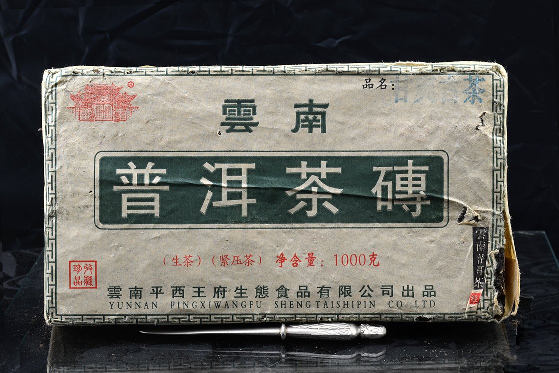 A Ping Xin Wang Fu Sheng Tai Cha Chang 云南平西王府生态食品有限公司 (császári palota teaüzem) egy yunnani templom és palota nevét viseli, egyebekben egy lincangi teaüzem, ami helyi ökológiai teakertekből származó teákat dolgoz fel. Ez azt jelenti, hogy őshonos fajtákat nevelnek természetes körülmények között. A kilós téglát Malajziában érlelték pár évig, ami kétségtelenül nyomott hagyott rajta. A levelek egységesek, az öntet erős, mély teát ígér, ehelyett kétszeri elmosás után elkezdve egy nagyon jól iható, kellemes, nedves ízű, a korty elején sima, csak később virágosodó teát kapunk.
