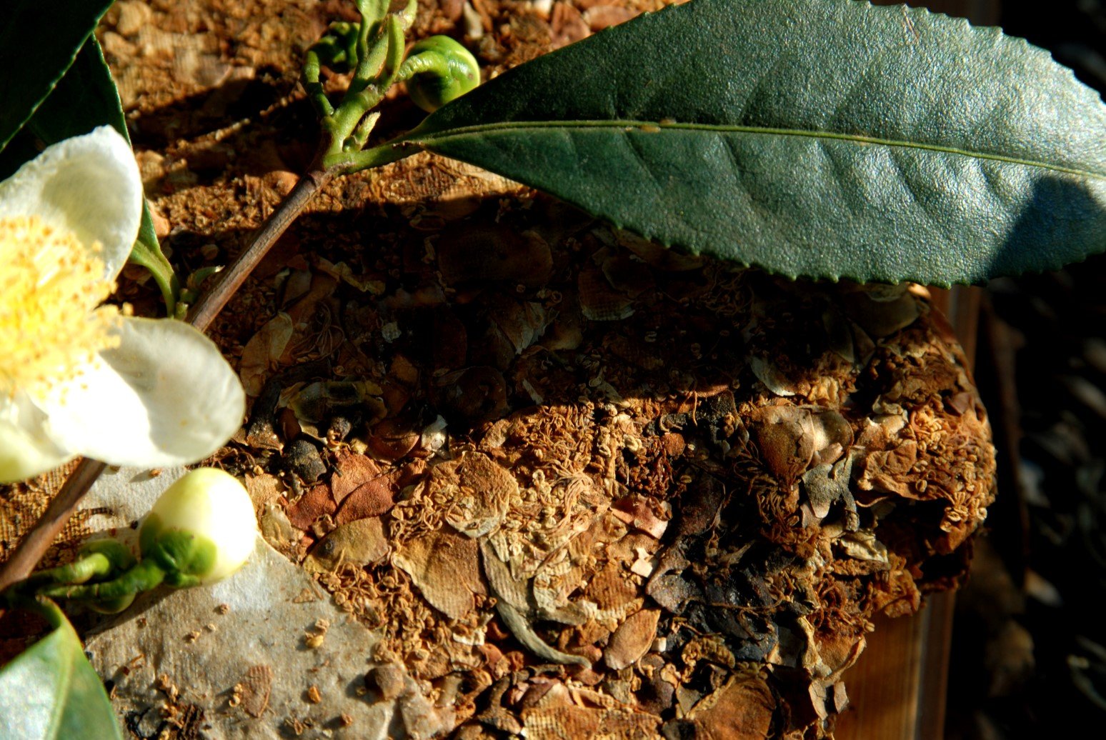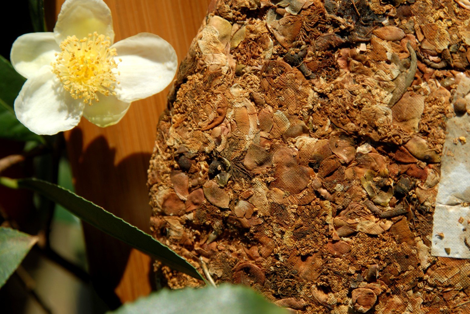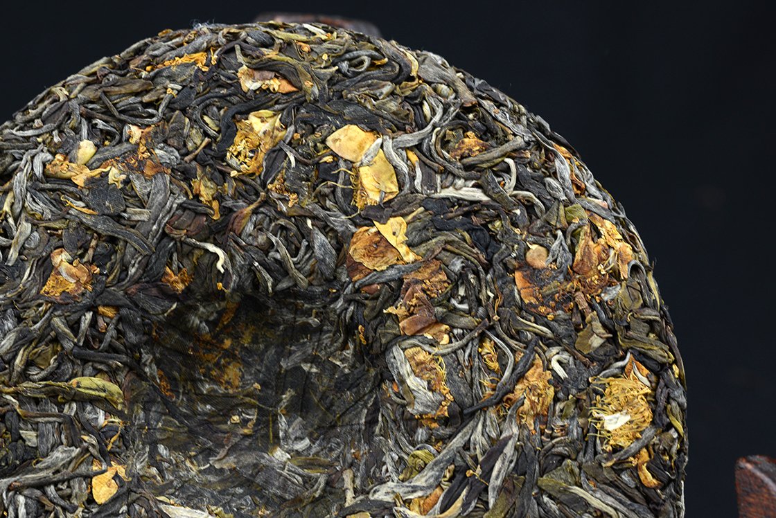 A teavirág teaként való elfogyasztása nem különös passzió, hanem bevett szokás. A tea késő ősszel bontja ki virágait, ebben a 200 grammos lepényben 1:10 arányban keverték Jingmai hegyi tavaszi vad puerh levelekhez. A virágok is vad tea példányokról származnak. A tea neve 花枝俏 virág a tavaszi ágon. Természetesen a természet energiáit szárított teavirágban tárolni nagy befektetést és munkát igényel, a virágot csak a fa károsítása nélkül válogatva lehet szedni, a szárított virág tömege pedig alig egy nyolcad része az eredeti tömegnek. A tea jól és szépen érik, de nehéz megvédeni a kártevőktől. Természetesen finom, könnyű, édes.