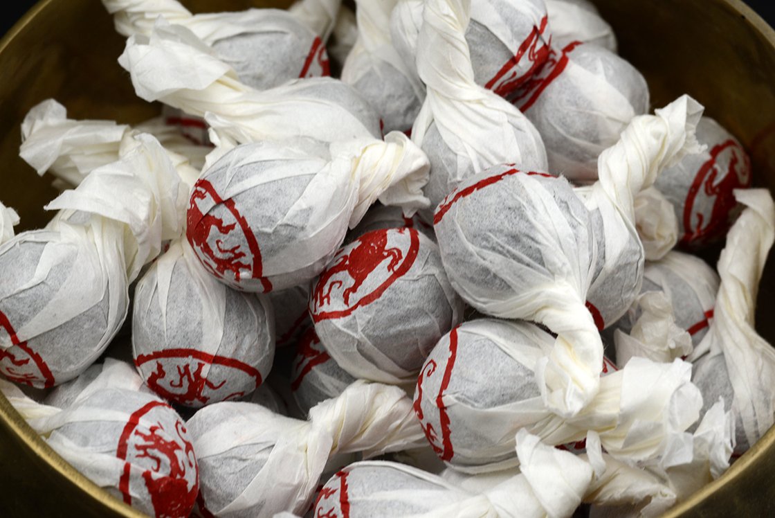 2015 Mengku Da Xue Shan (Nagy-Havas hegység) sheng puerh tea sárkányszem. Ez a Nagy Havas hegység Mengkuban van, nem pedig Yongdéban. 40-60 éves teafákat gondozó teaültetvény kézzel feldolgozott őszi teája. Egy adag 8 gramm, ami Nagy Havas teához méltóan sokszor felönthető, teljes, hosszú barátságos utóízű . A csomagolás 100 % pamut.