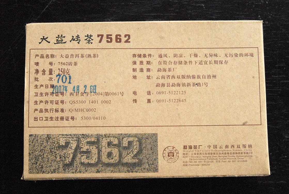 A Menghai Teaüzem klasszikus receptje, ami 50 év óta a menün van és minden évben újra gyártják. Ez volt az első, nagyüzemi keretek között gyártott shu puerh. Lágyan fermentált, furcsa, édes-savanykás íze a szúrós Menghai körítéssel, sokak kedvence.