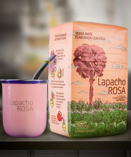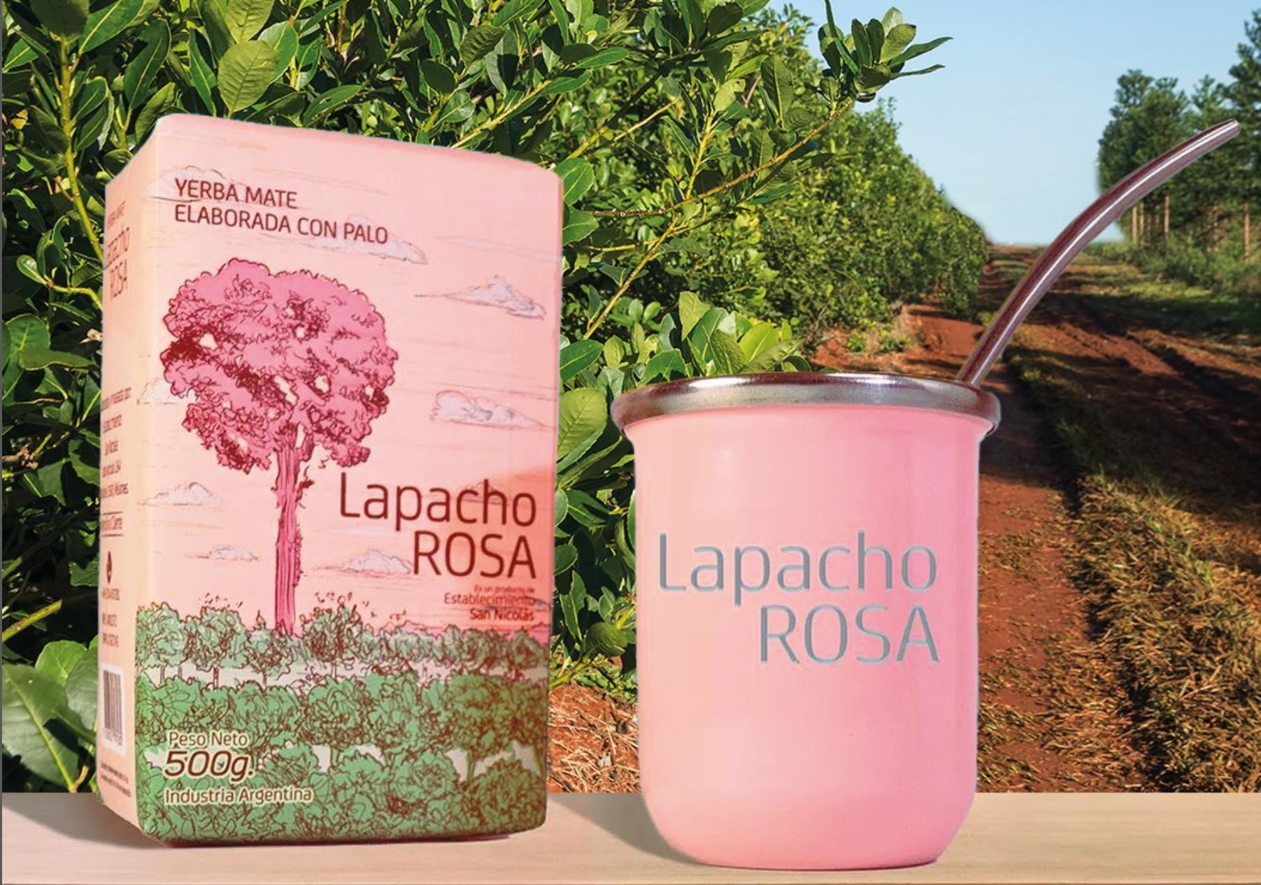 A Lapacho Rosa márka, a volt katolikus misszió az Apóstolesben található agroökológiai üzem, az establecimiento San Nicolás terméke, amelyet a mate iparban szokatlan módon egy hölgy menedzsel. Az álmos kisváros Apóstoles a yerba mate fővárosa, itt minden a matéről szól, EXPO, karnevál, szépségverseny, más meg nem is nagyon van. Csak verébugrásnyi távolságra van a Playadito és a Liebig kolónia, a Las Tunas üzeme és sok-sok más ismert mate márka székhelye. A pink virágú lapacho (más néven tabebuia) fára (amely 2018 óta Misiónes hivatalos jelképe) való hivatkozás egyben egy kötelék és elkötelezettség a környezet megóvására, megőrzésére. A birtok legendája szerint ez a fa volt az egyetlen, ami elviselte a környezeti változásokat.