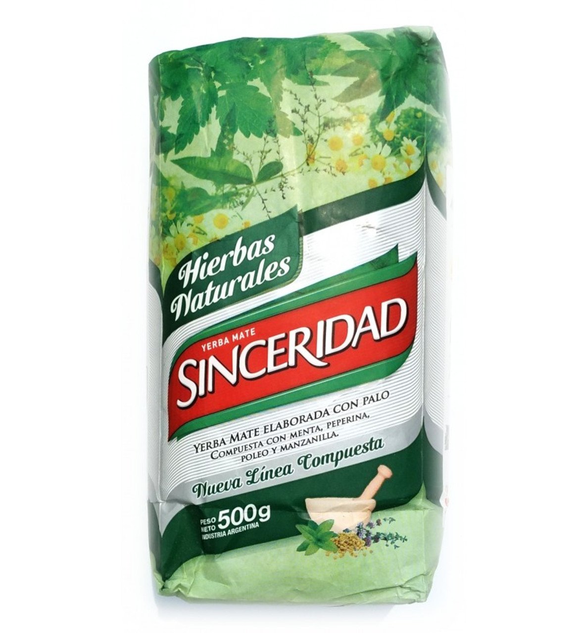 A Sinceridad palettáján az ízesített maték viszik a prímet, a Sinceridad Compuesta Hierbas yerba matéban a yerba mate mellett menta, poleo (csombormenta Mentha pulegium L.), kamilla lágyítja a szívünket.