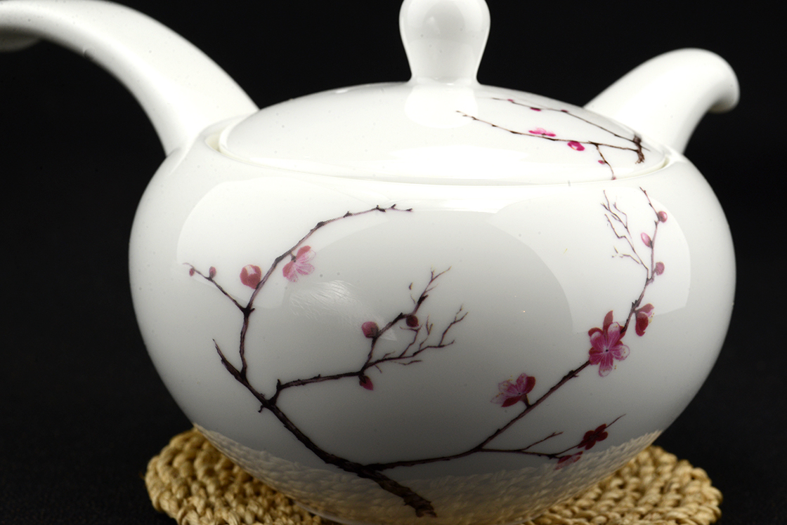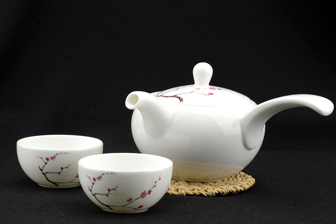 470 ml-es kyushu és két porcelán csésze papírdobozban. A készletet német piacra gyártották finom kínai csontporcelánból, a modell pedig japán.