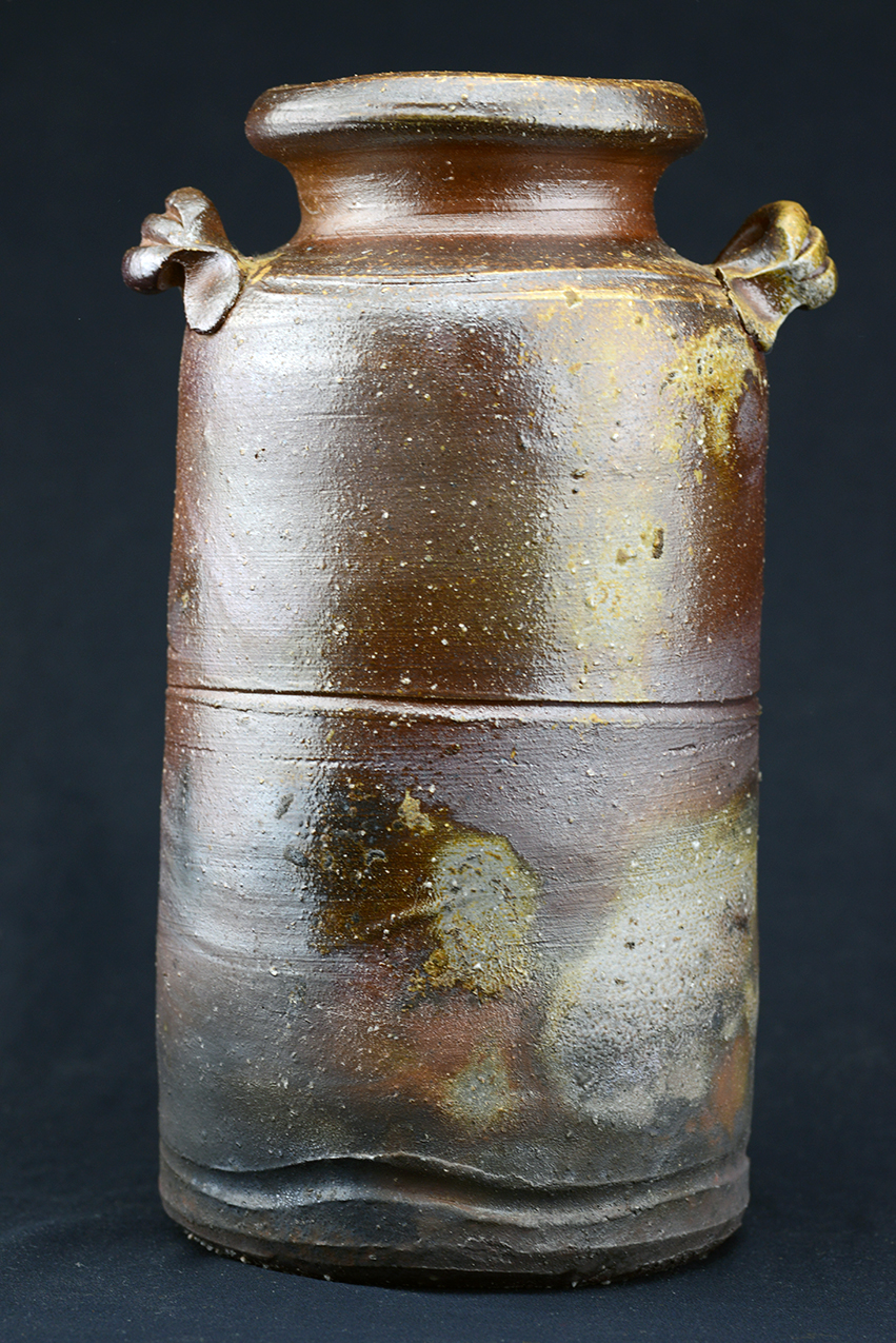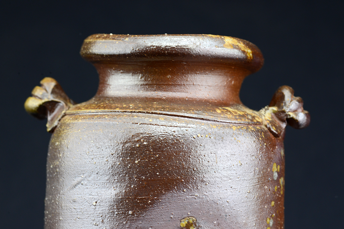 Gyönyörű bizen virágváza Fumio Mitsuke (1939 – ) műhelyéből.