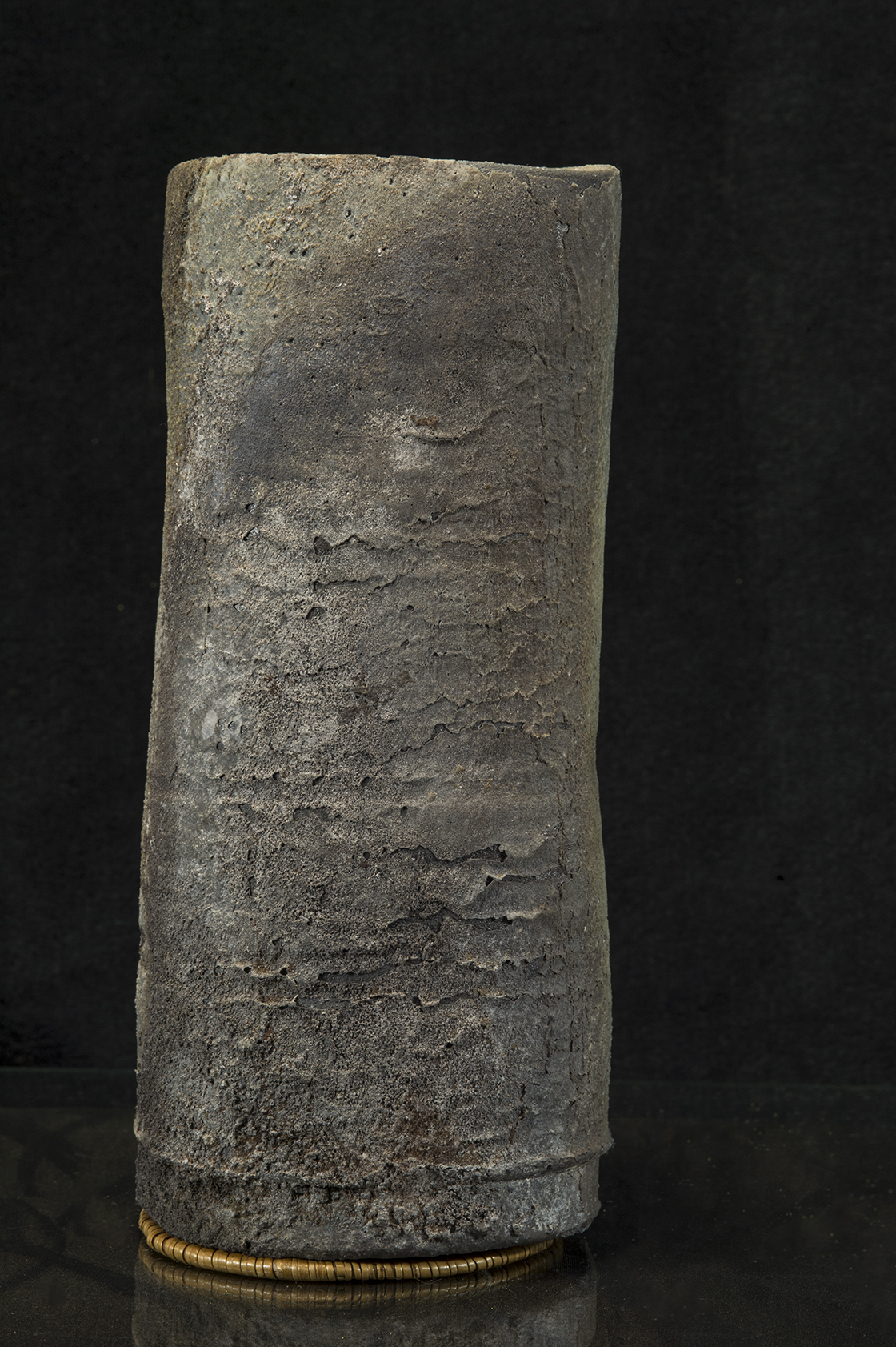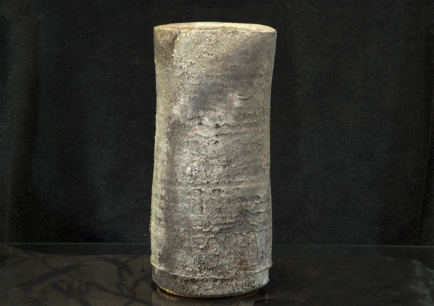 Ez a nagy méretű váza 28 cm magas, számos tájat jelenít meg felszínén. Mázatlan, fatüzes kerámia.