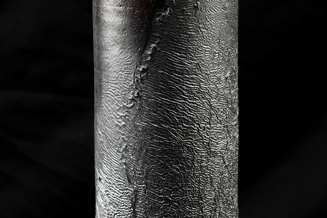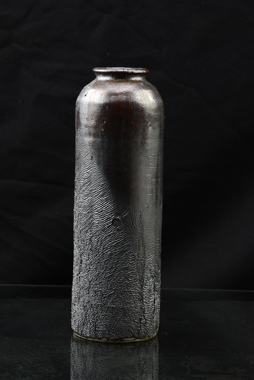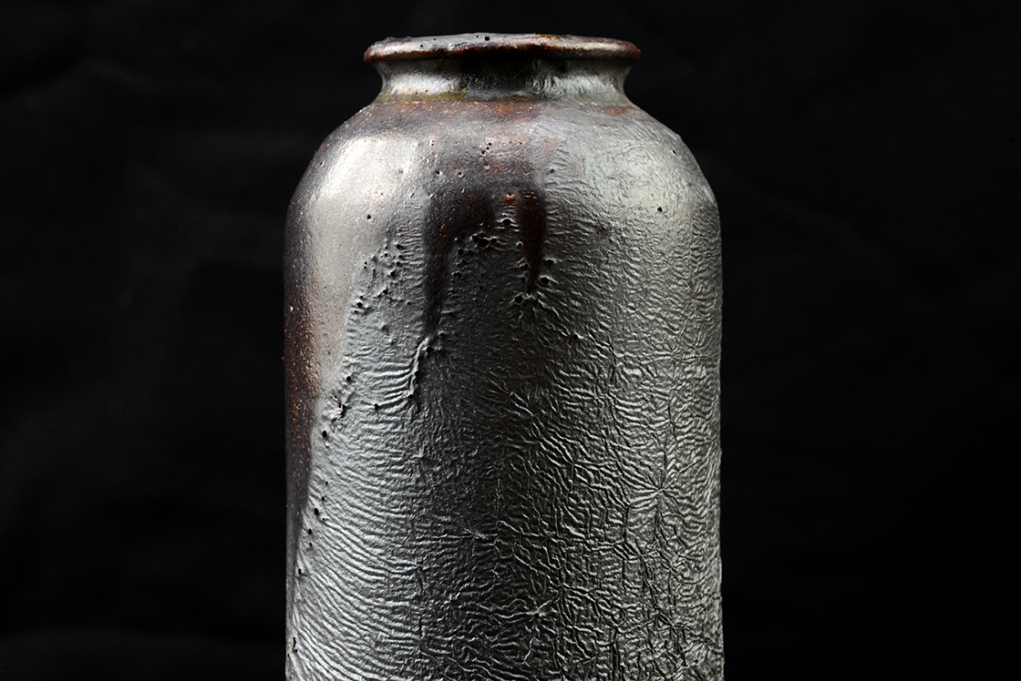 19,5 cm magas, 6,4 cm széles japán virágváza Suishi Hashino műhelyéből. A kagoshimai műhely a Sakurajima vulkán hamujából éget mázat a termékeire.  A Sakurajima Japán egyik híres, igen aktív vulkánja a kagoshimai öböl közepén emelkedő szigeten. Sakura a cseresznyevirág, jima a sziget, de a vulkánnak otthont adó szigetet nem a sakuráról nevezték el, hanem „Konohana Sakuyahime” istennőről.