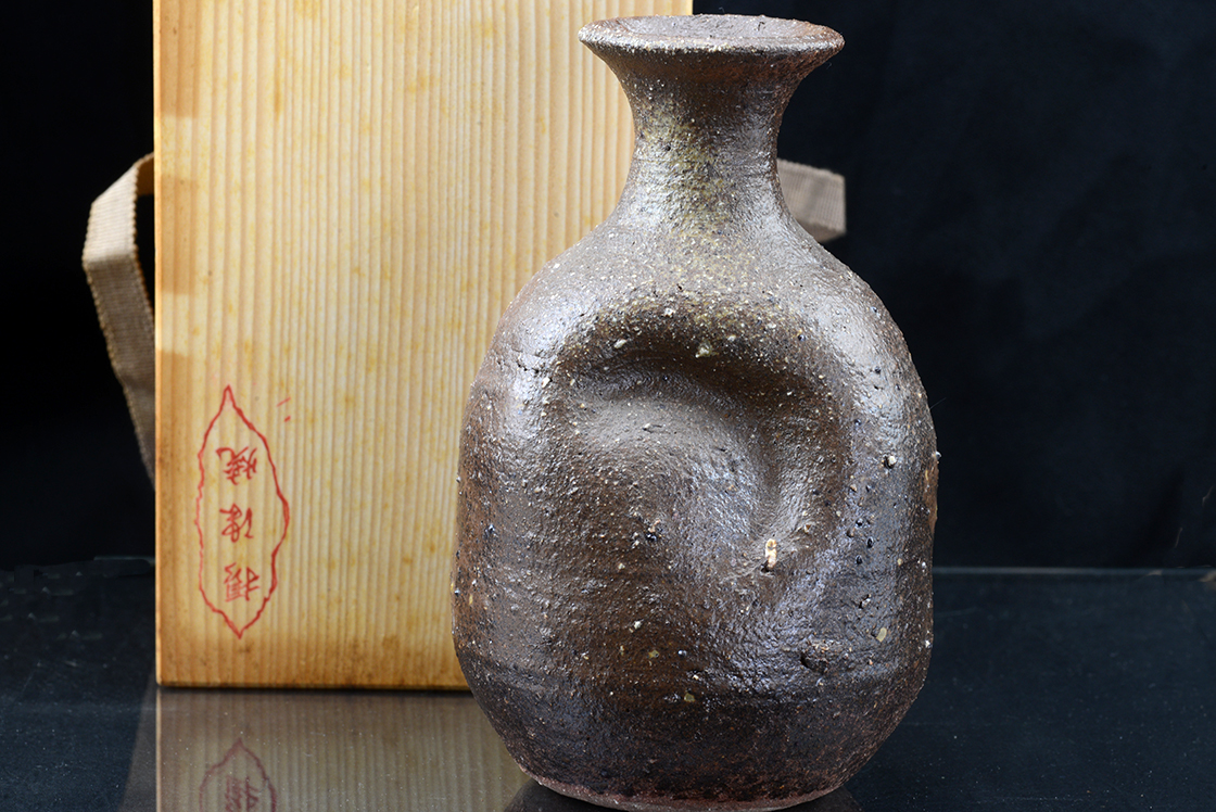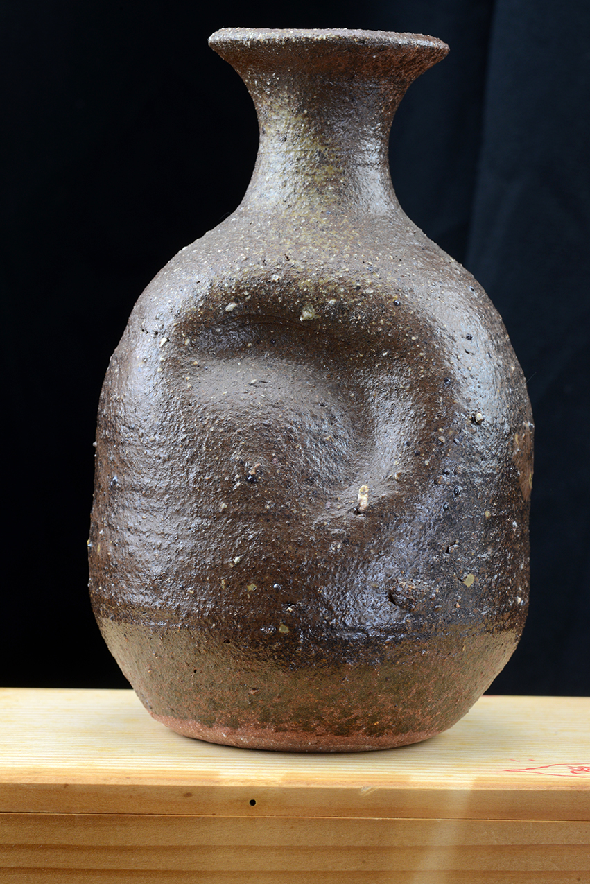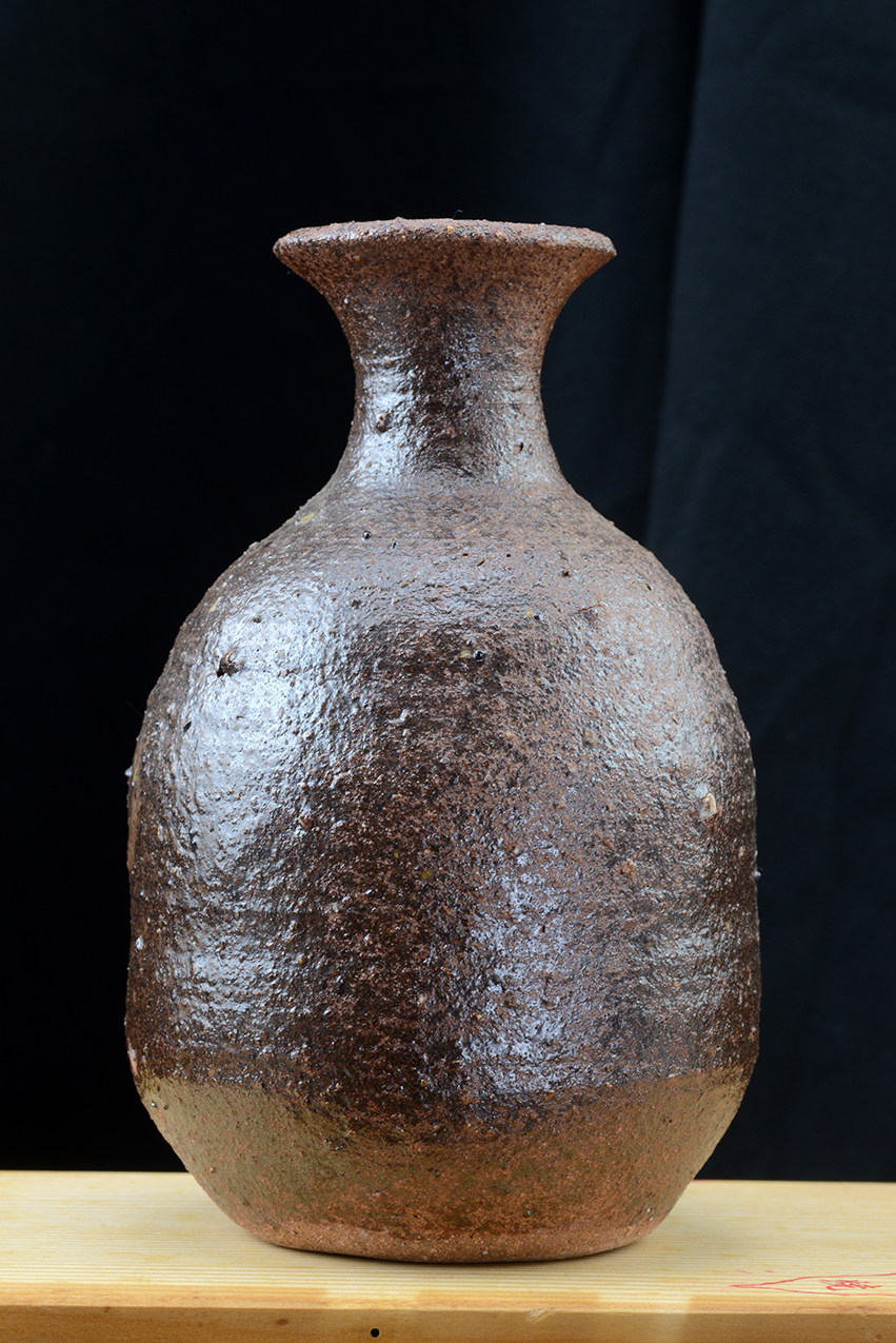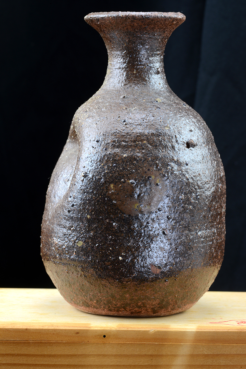Fatüzelésű kemencében égetett váza, amely 16 cm magas 10,5 cm széles jellegzetes wabi „nem-díszítéssel”