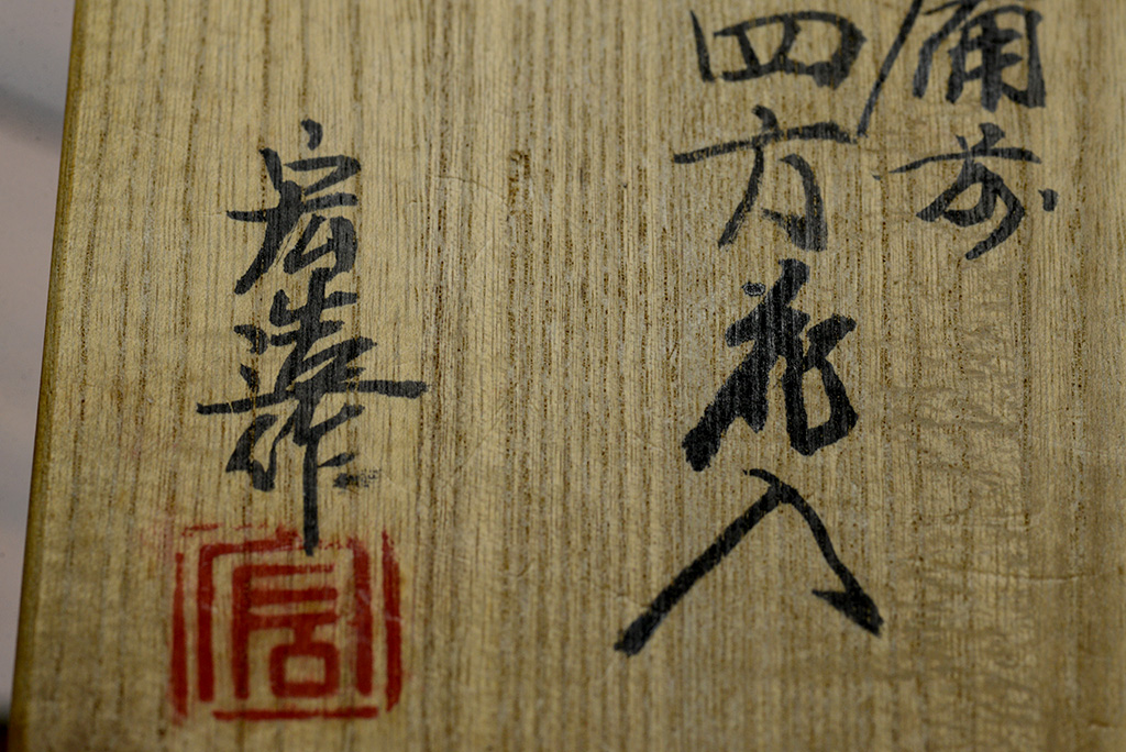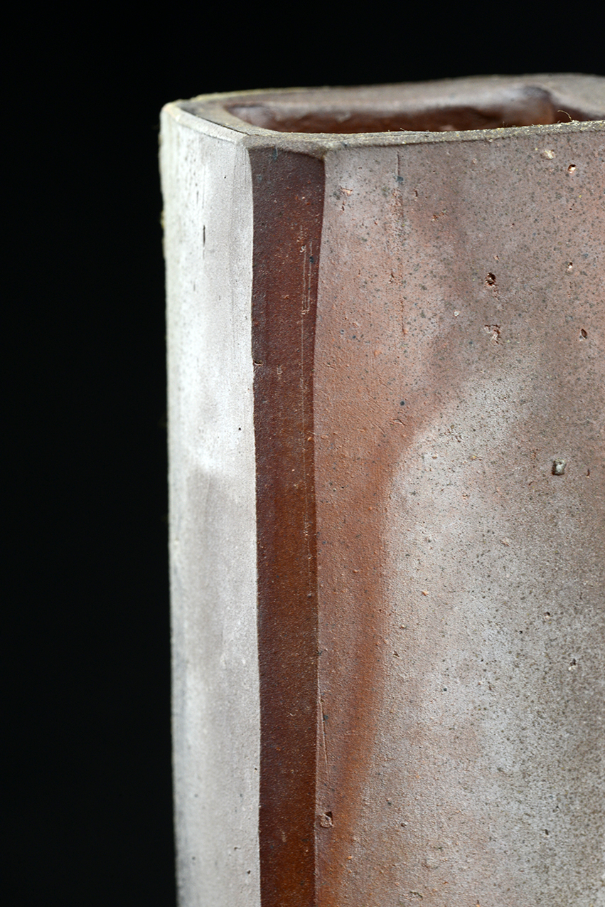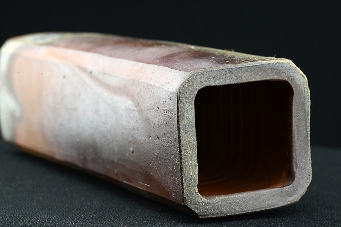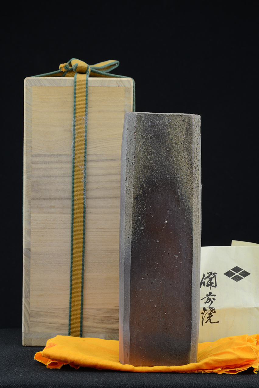 20,8 cm magas, 7 cm széles 700 gramm súlyú szögletes virágváza Kozo Kumura bizen műhelyéből. A váza jelzett fadobozban lakik a műhely igazolása
