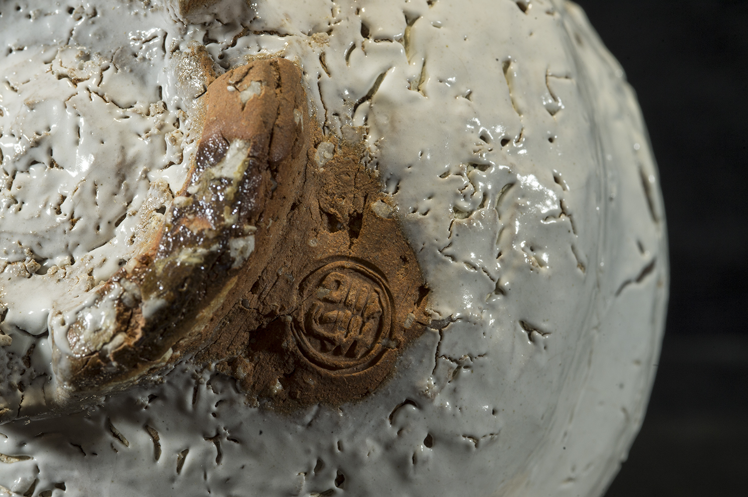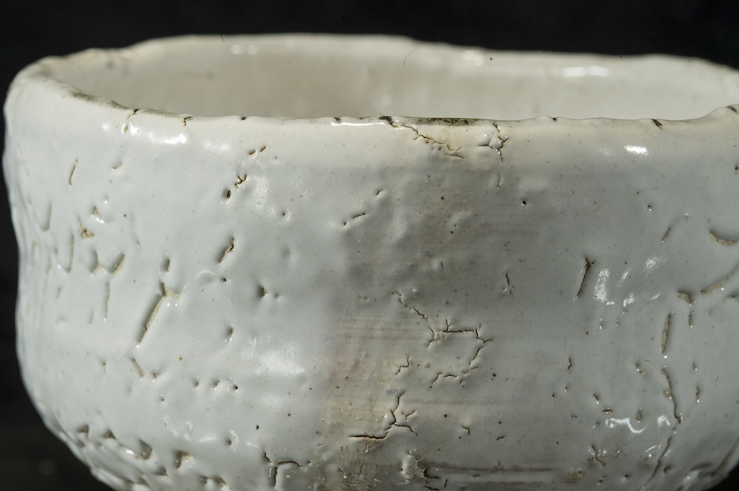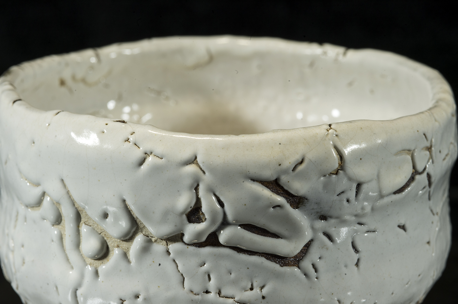 Az itt látható hagi chawan Yamane Seigan műhelyében a Kousaianban készült, aki a Hagi mellett más stílusokban is otthonosan mozog. A csésze enyhe rószaszín elszíneződése a mázba kevert hamu eredménye, részben véletlenszerűen, az égetési viszonyoktól függően alakul ki, és emeli a tárgy értékét.
