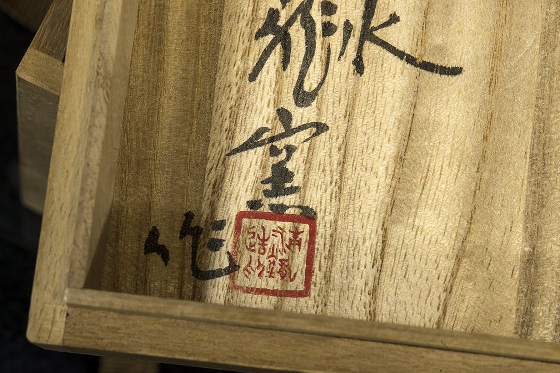 12,7 cm átmérőjű, 7,4 cm magas mázas teáscsésze Ryuhei Niwa műhelyéből, a Seiryūgamából 青龍窯
