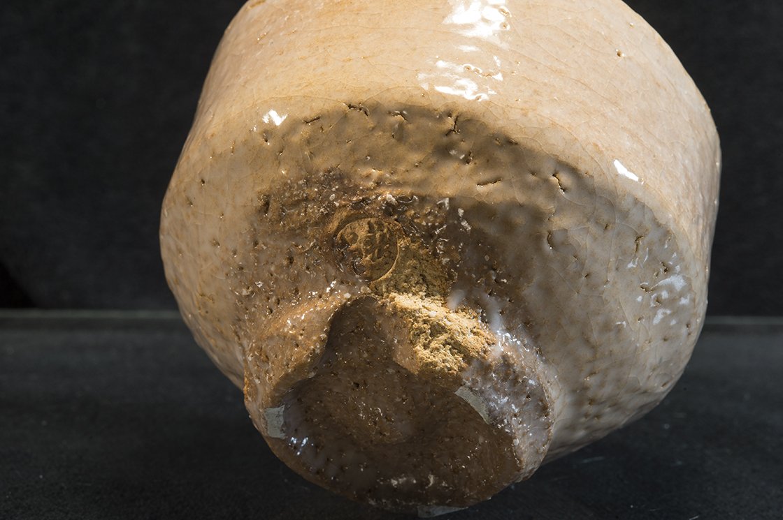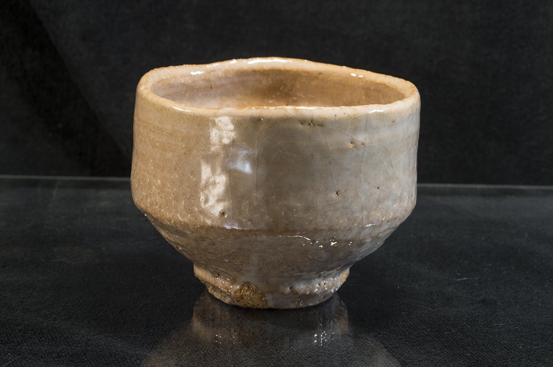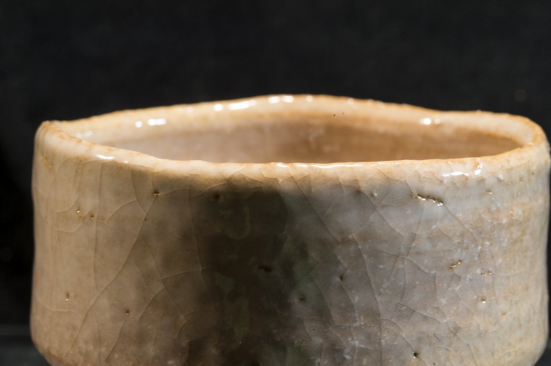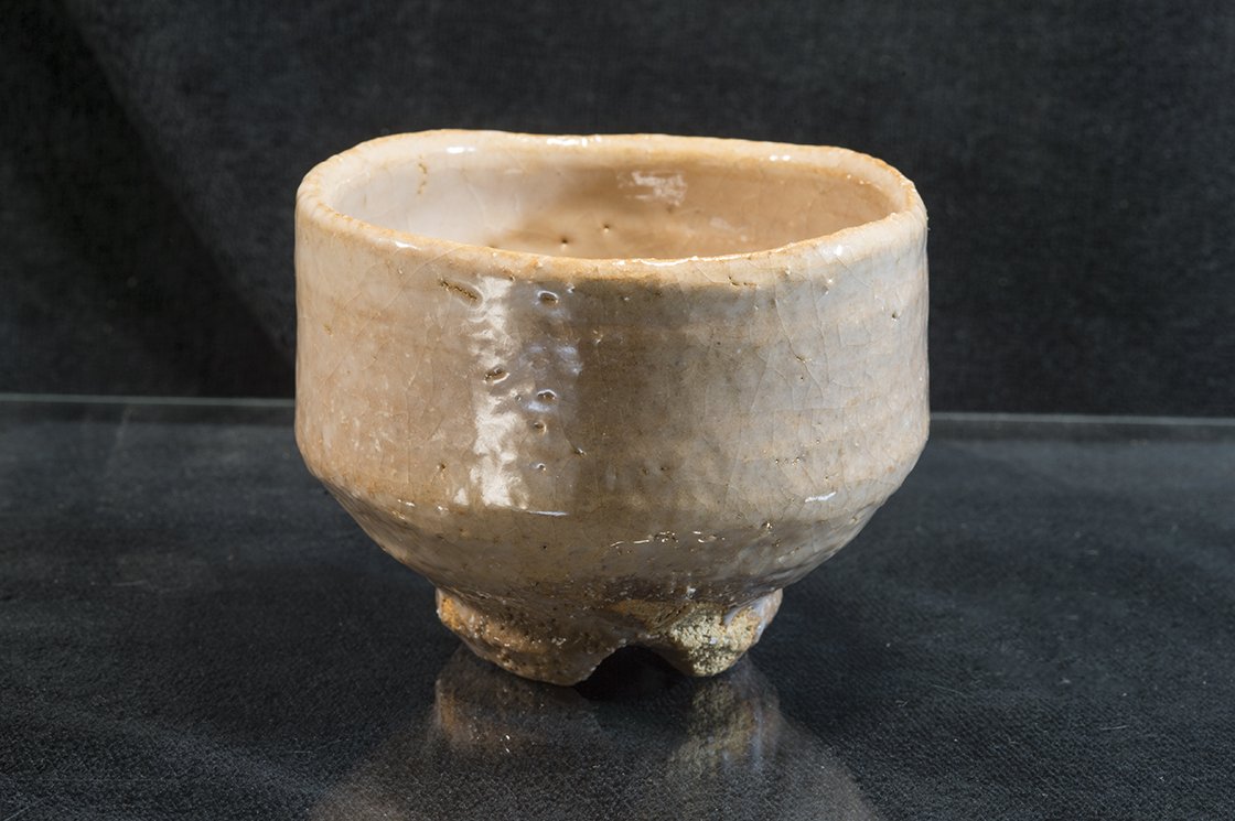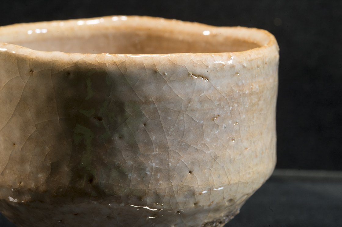 Az itt látható hagi chawan Eisen Watanabe műhelyében készült, aki a Hagi mellett más stílusokban is otthonosan mozog. A csésze enyhe rószaszín elszíneződése a mázba kevert hamu eredménye, részben véletlenszerűen, az égetési viszonyoktól függően alakul ki, és emeli a tárgy értékét.