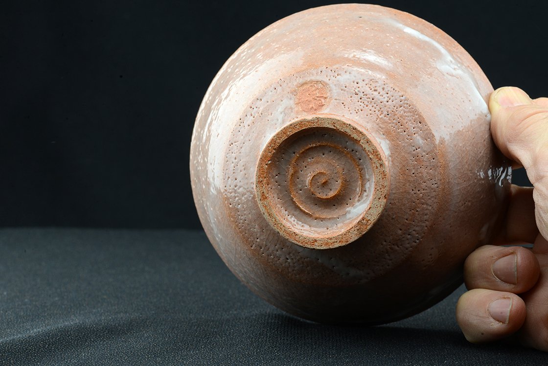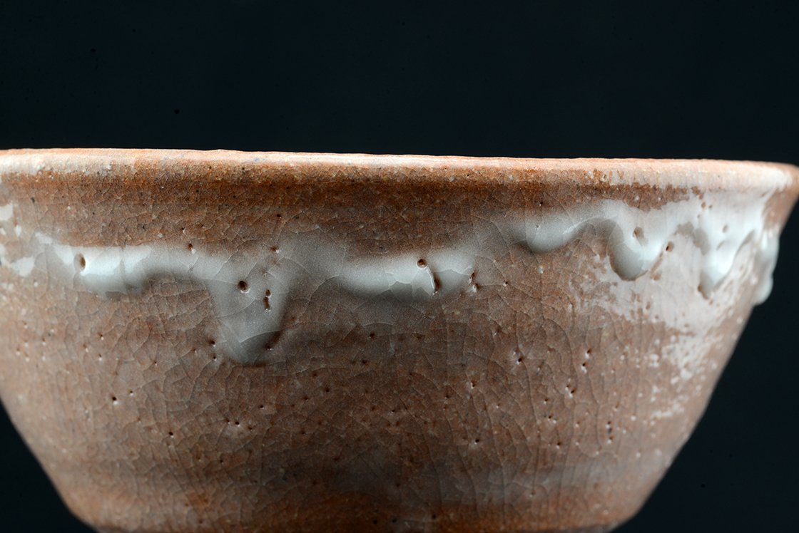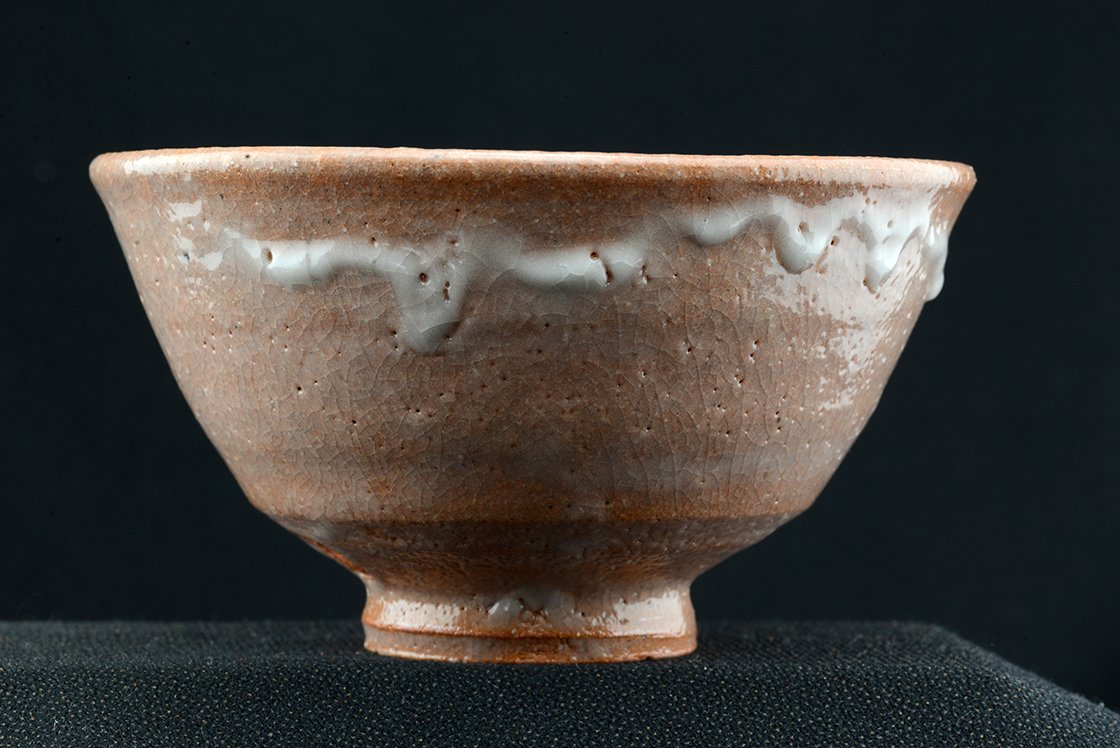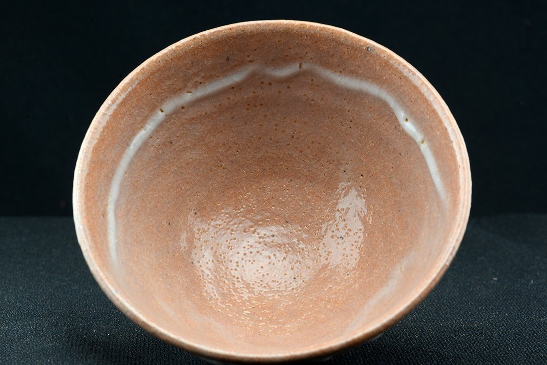 Az itt látható hagi chawan Eisen Watanabe műhelyében készült, aki a Hagi mellett más stílusokban is otthonosan mozog. A csésze enyhe rószaszín elszíneződése a mázba kevert hamu eredménye, részben véletlenszerűen, az égetési viszonyoktól függően alakul ki, és emeli a tárgy értékét.
