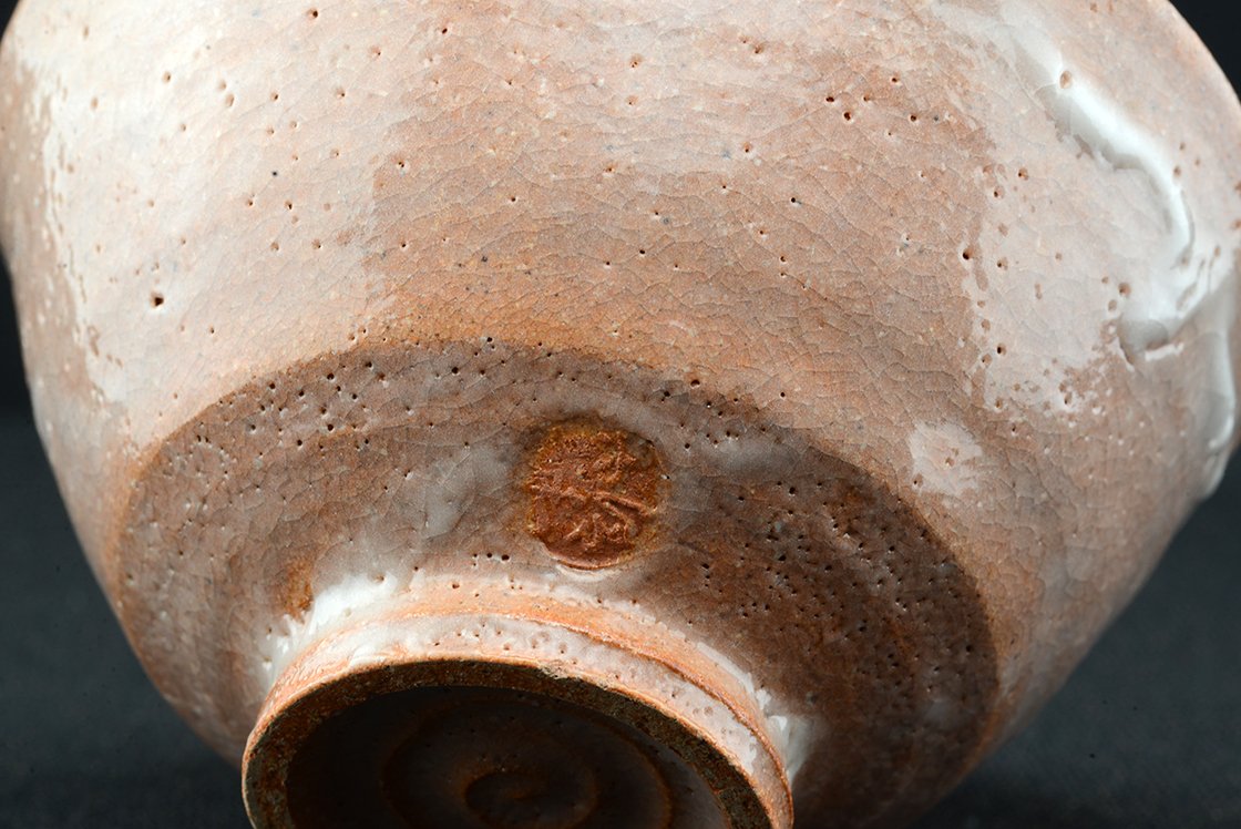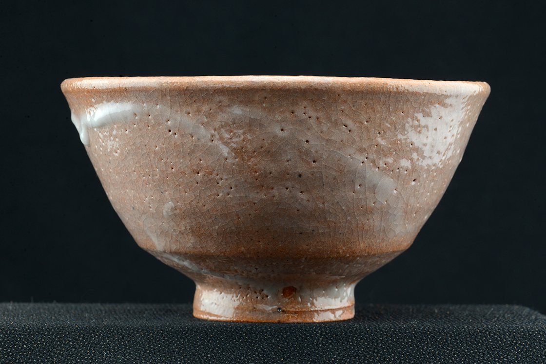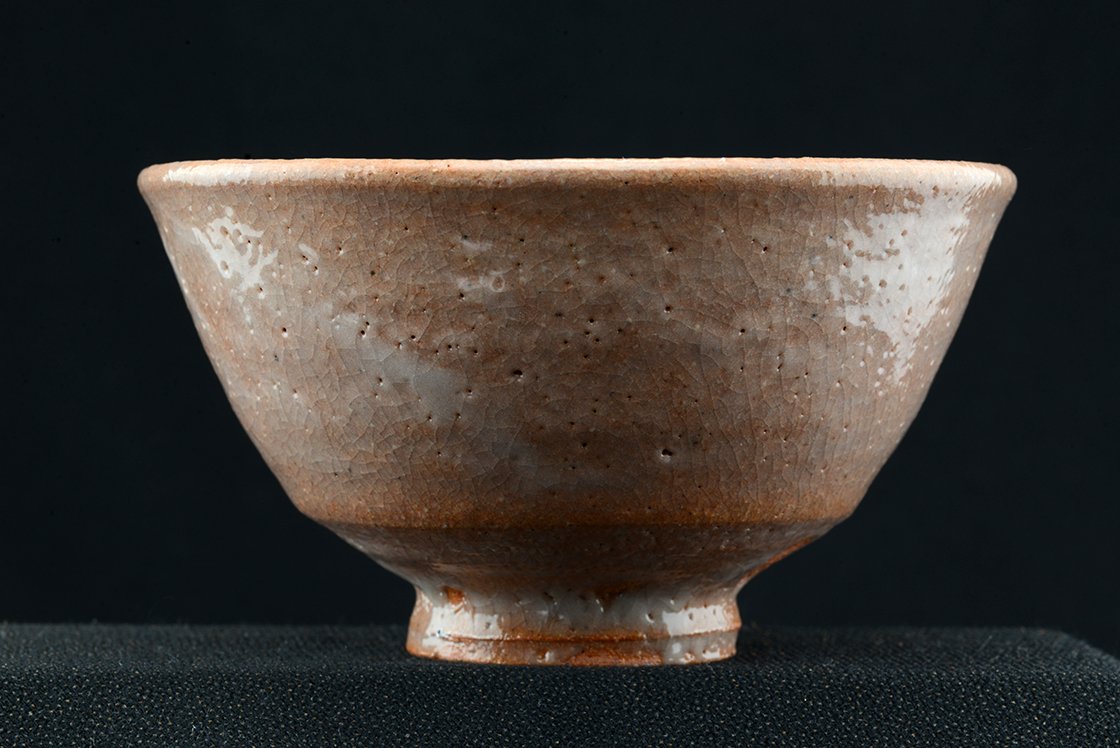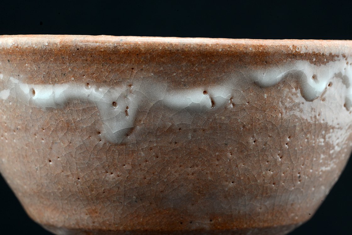 Az itt látható hagi chawan Eisen Watanabe műhelyében készült, aki a Hagi mellett más stílusokban is otthonosan mozog. A csésze enyhe rószaszín elszíneződése a mázba kevert hamu eredménye, részben véletlenszerűen, az égetési viszonyoktól függően alakul ki, és emeli a tárgy értékét.