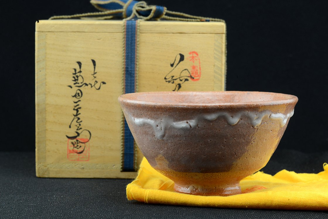 Mesteri Hagi chawan Sanzaemon Kaneta műhelyéből. A csésze 13 cm széles, 7,5 cm magas. A Kaneta műhelyt, aminek tagja a modern Hagi egyik csillaga, Kaneta Masanao, még 1782-ben alapították. Sanzaemon pedig Masanao apja, a műhely hetedik generációja, aki tradicionális Hagi kerámiát művelt.
