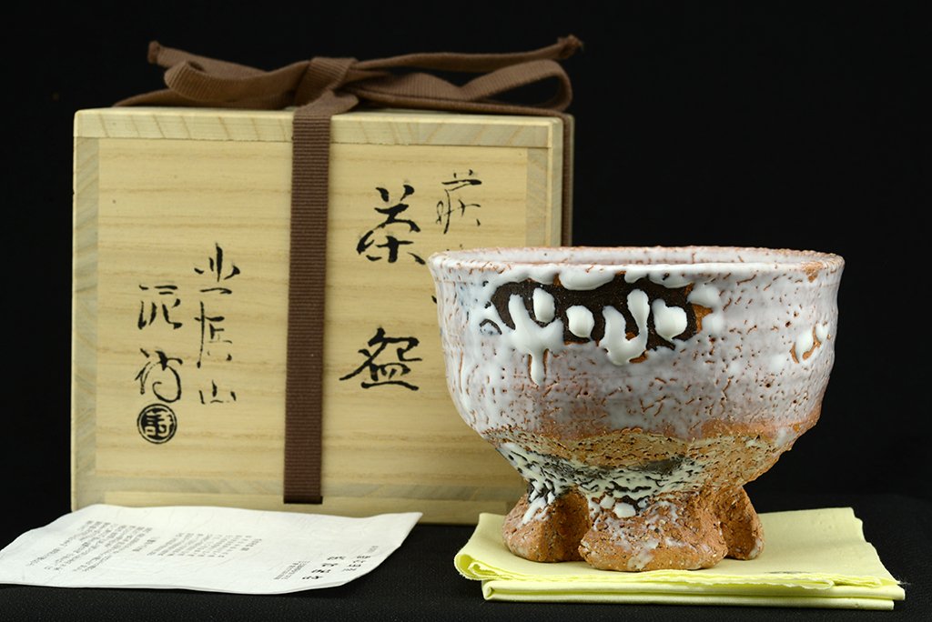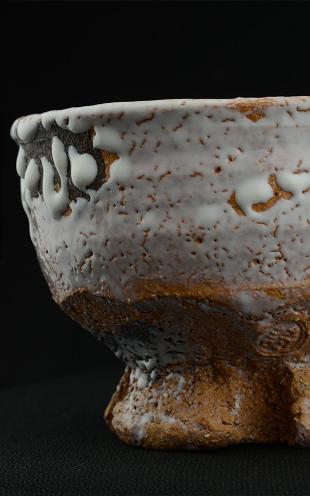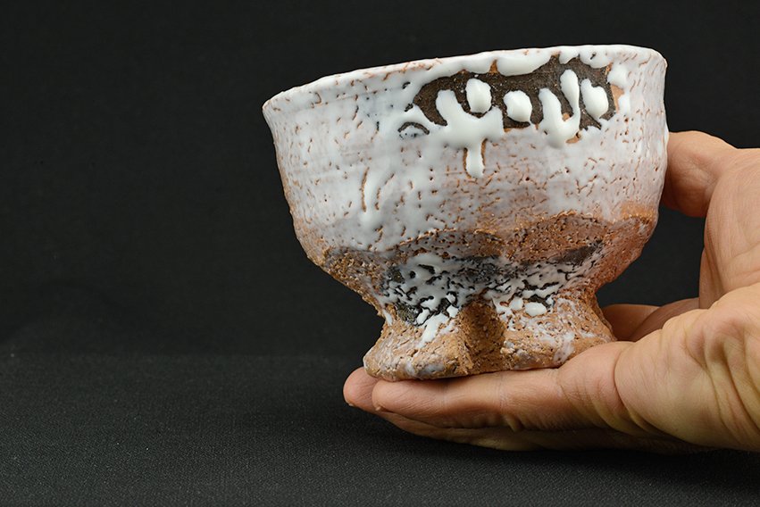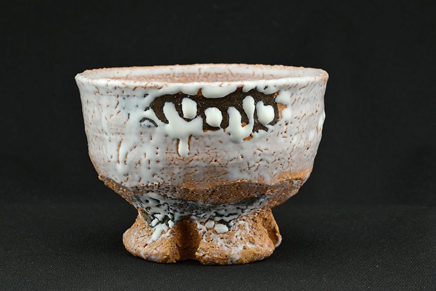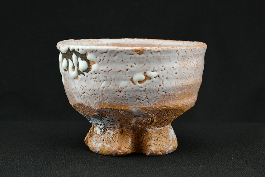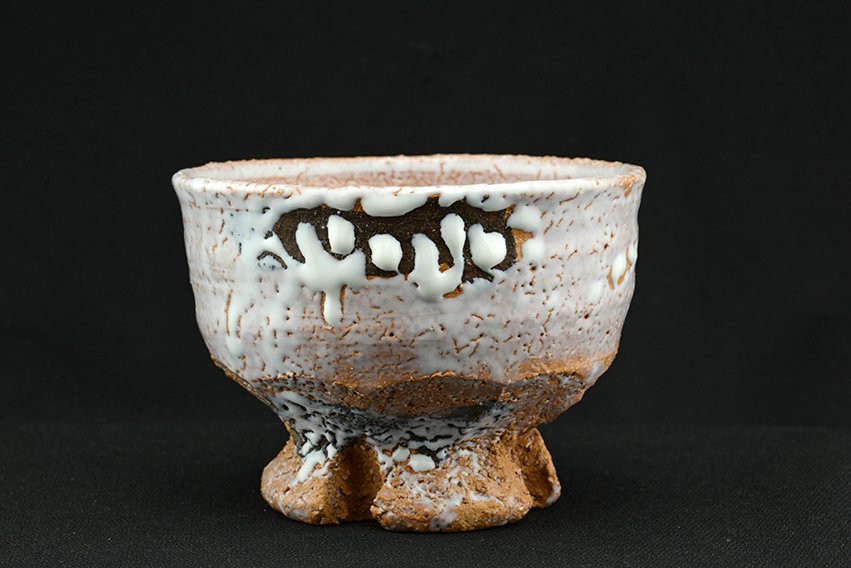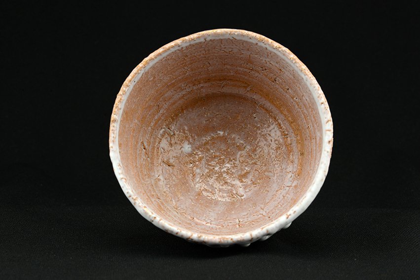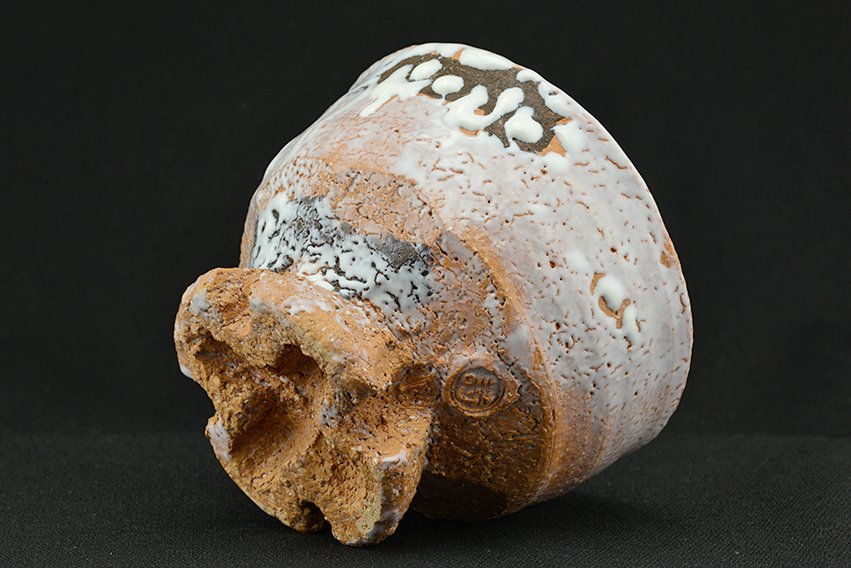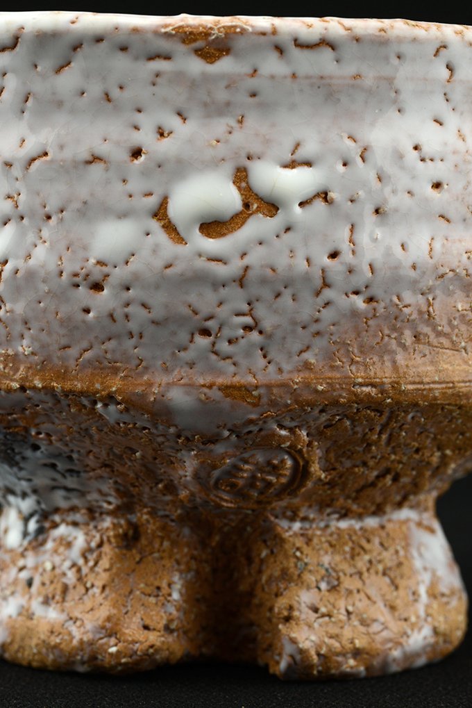 Kereszttalpas Hagi chawan teáscsésze Shibuya Deishi 渋谷泥詩 műhelyéből (Odaiba műhely 御台場窯).