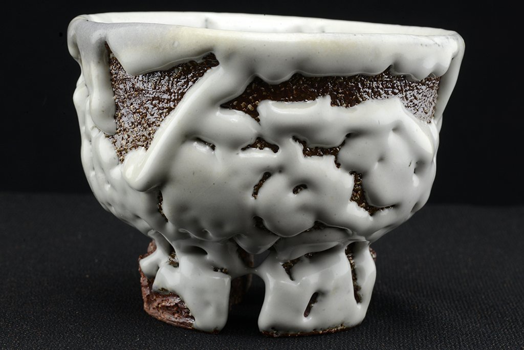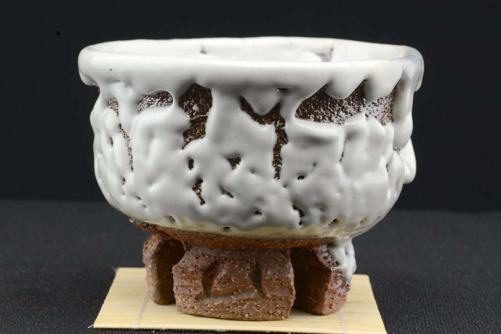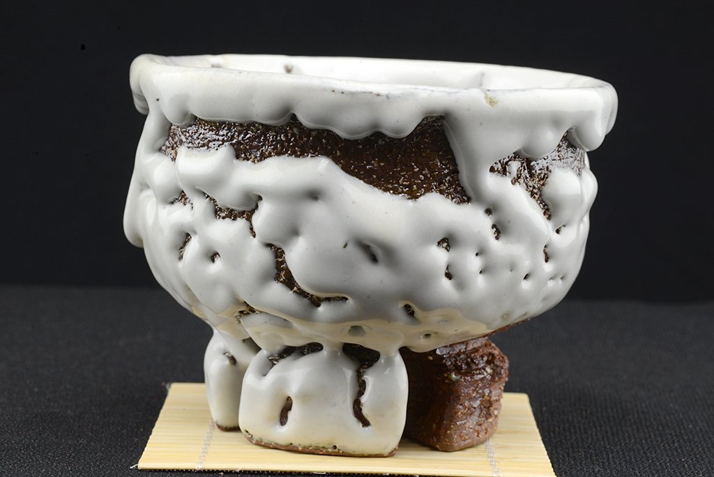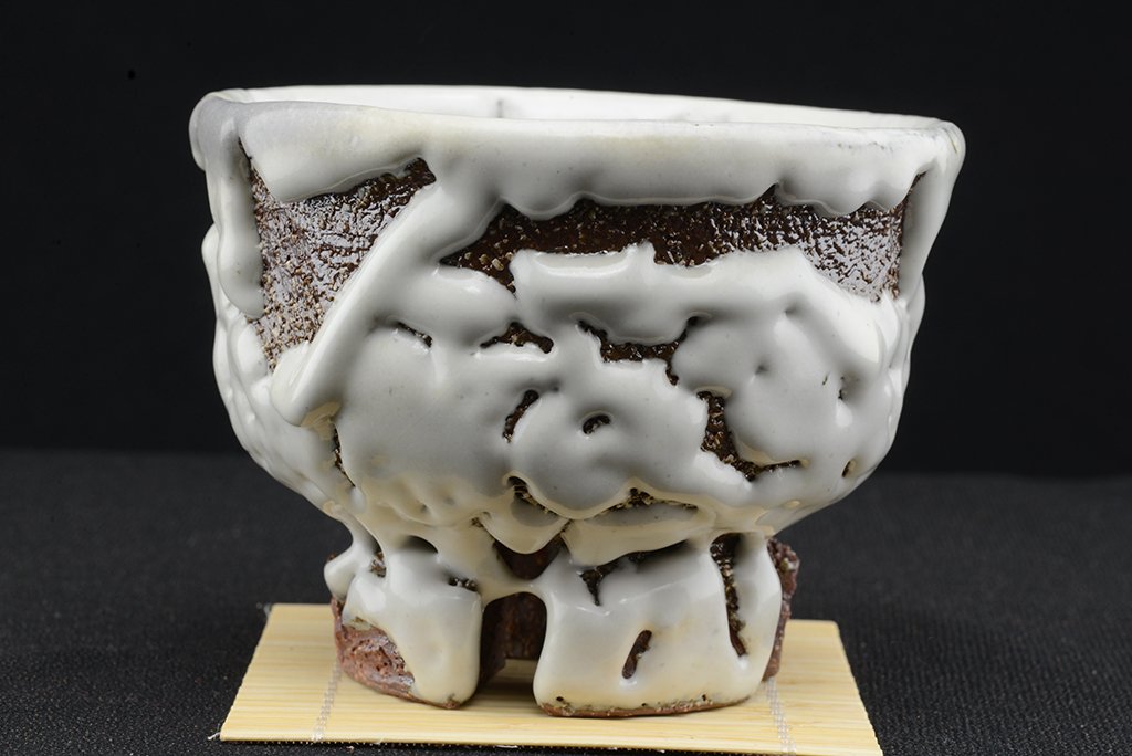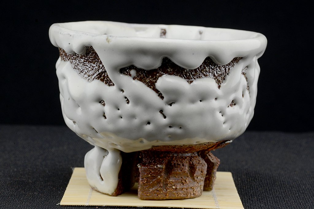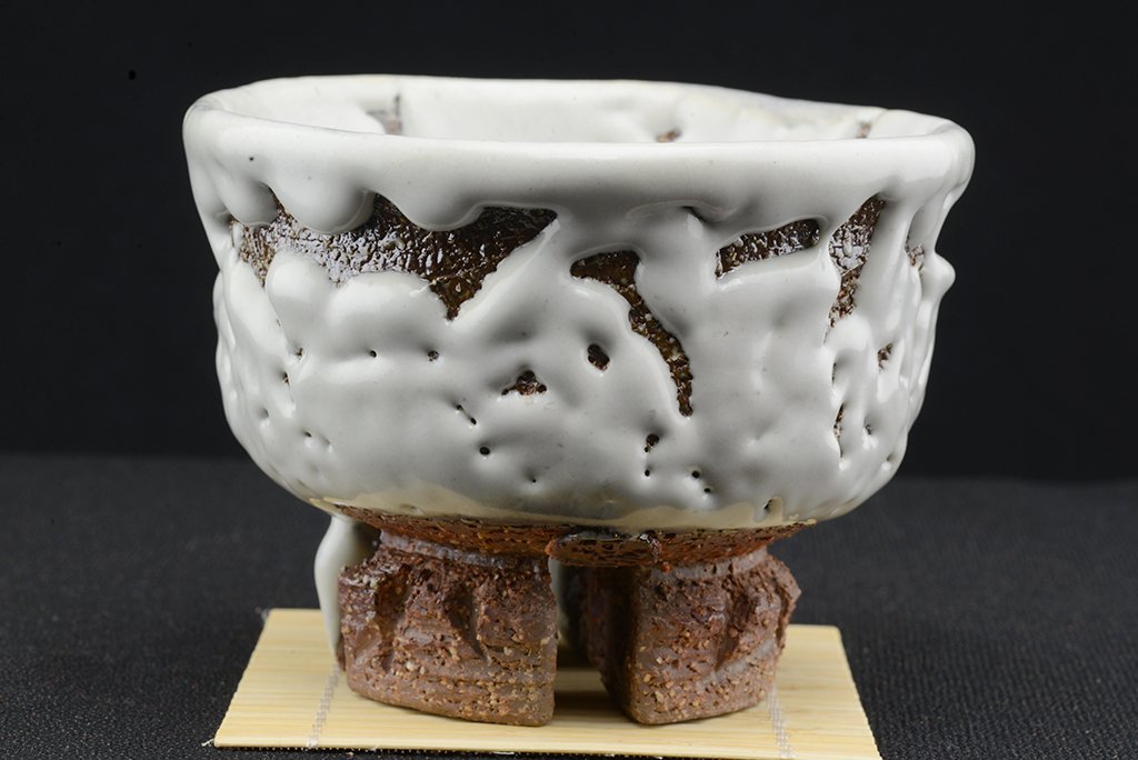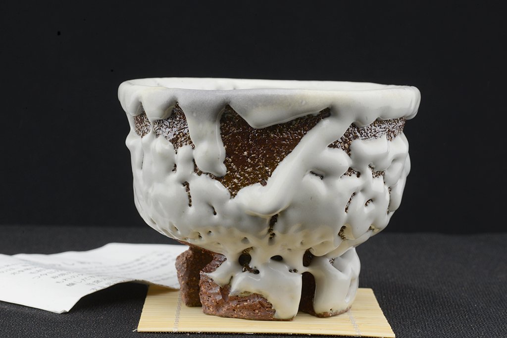 Tea szertartás színvonalú, oni hagi chawan japán teáscsésze Yamane Seigan műhelyéből.