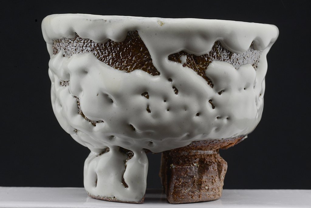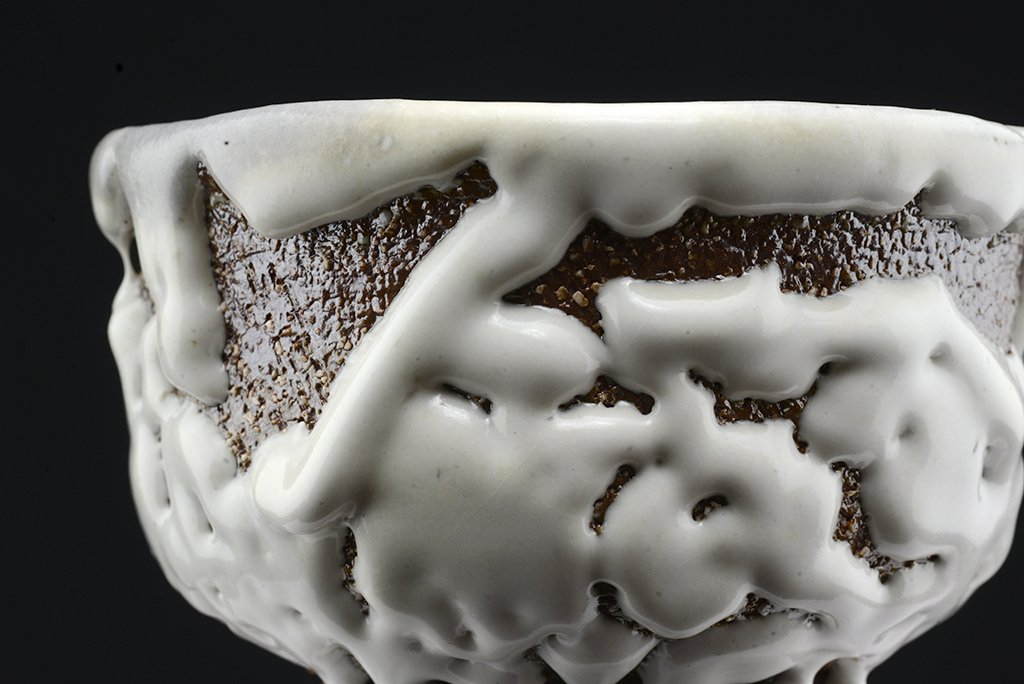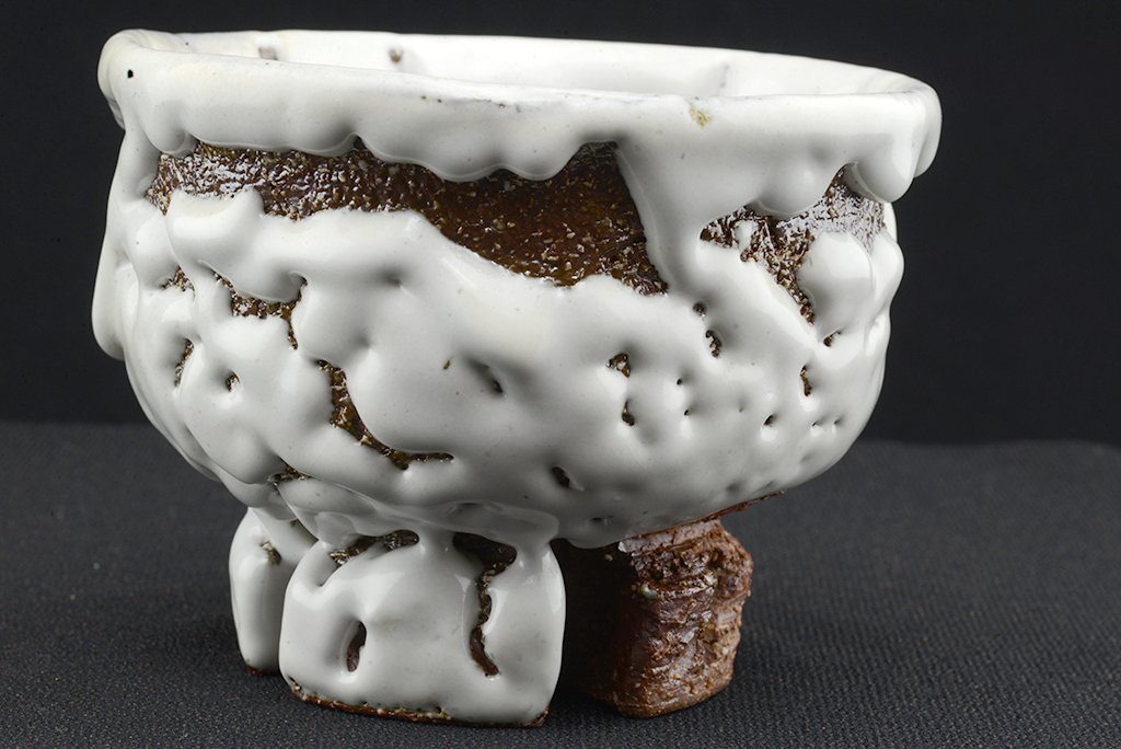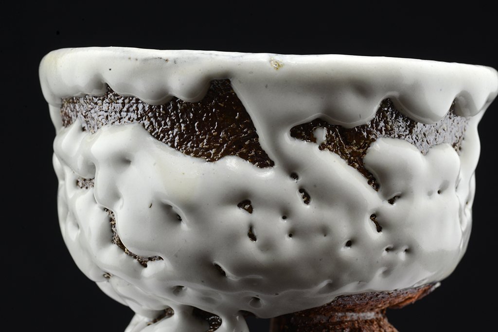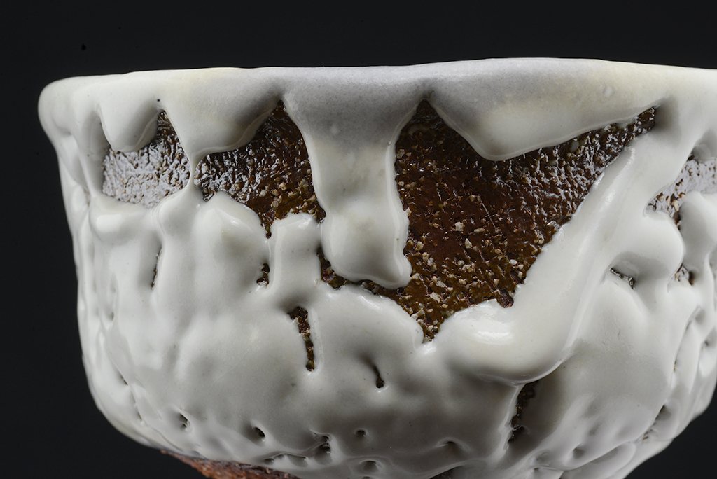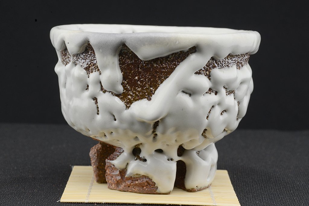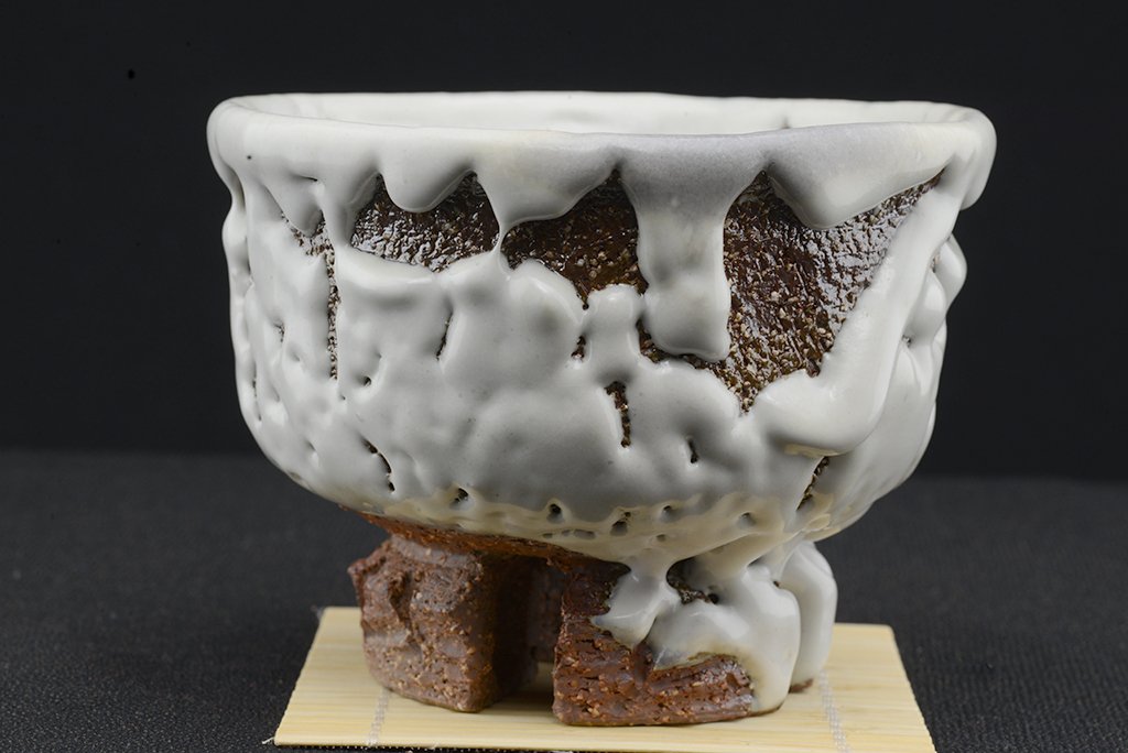 Tea szertartás színvonalú, oni hagi chawan japán teáscsésze Yamane Seigan műhelyéből.
