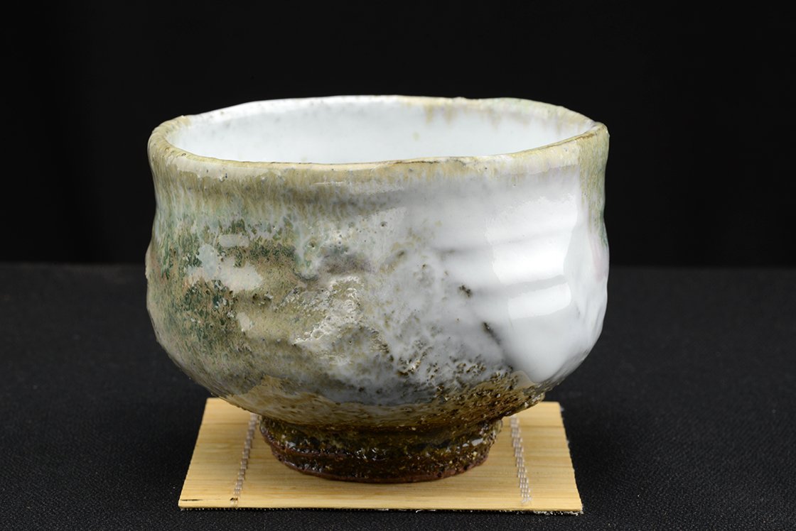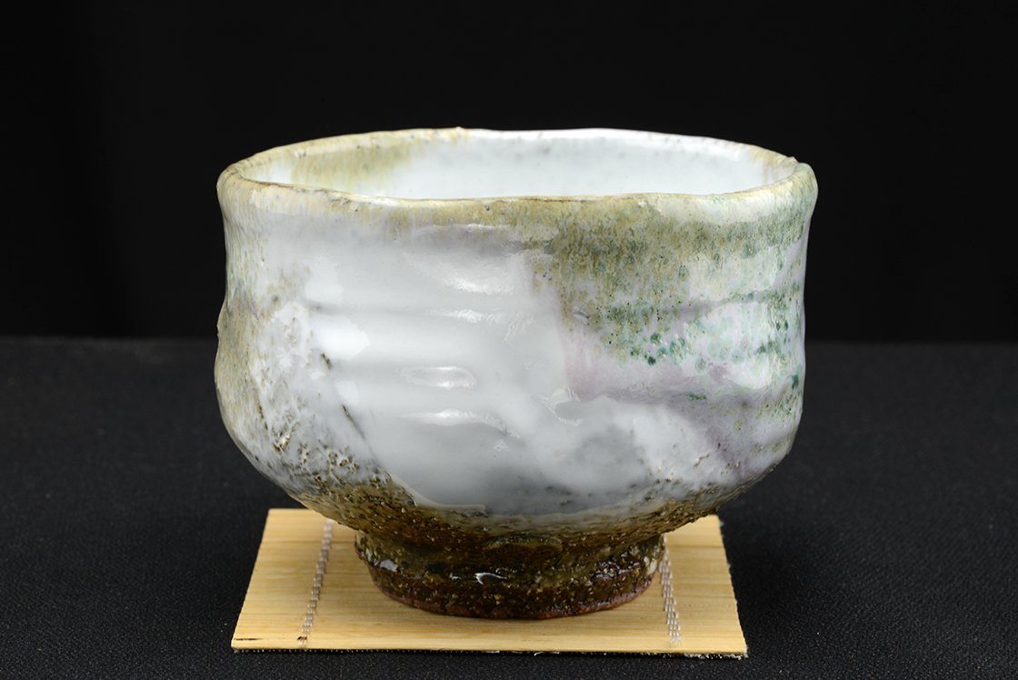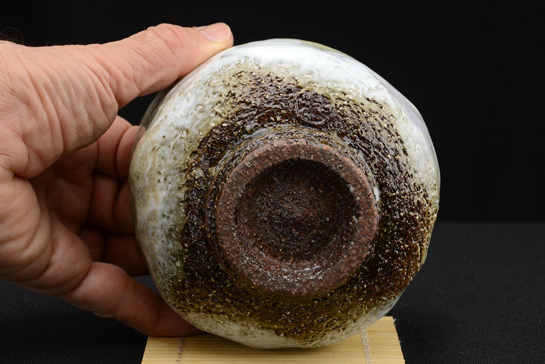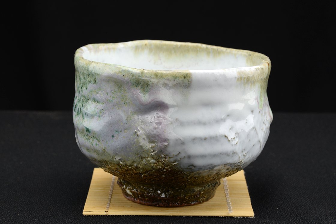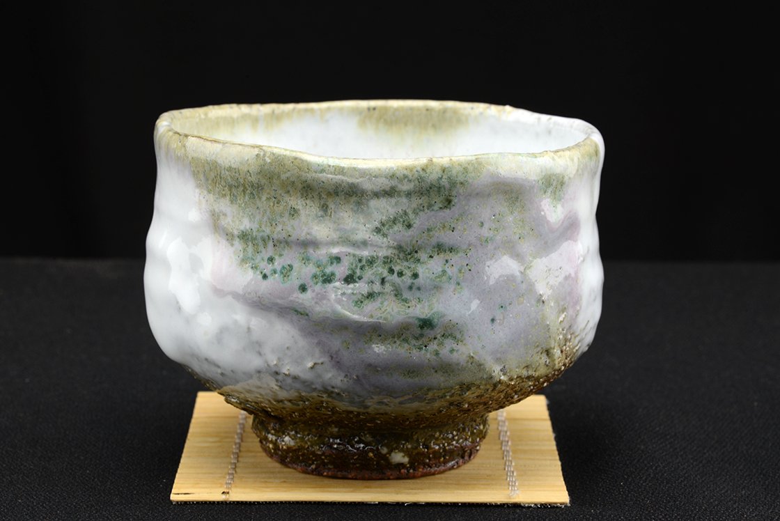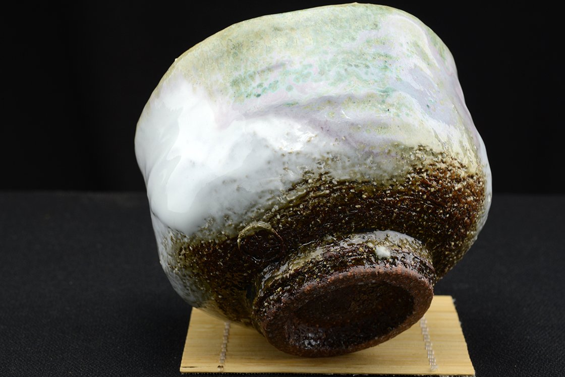 Yamane Seiganról (1952 – ) már nagyon sokat írtunk a Hagi kerámia egyik jeles művésze,a kobaltkék máz tökéletesítője, aki mindenféle stílusban biztos kézzel mozog. Műhelyében készült, igazolással együtt kínáljuk ezt a szivárványos matcha csészét, ami 12 cm átmérőjű, 9,2 cm magas és 350 gramm súlyú.
