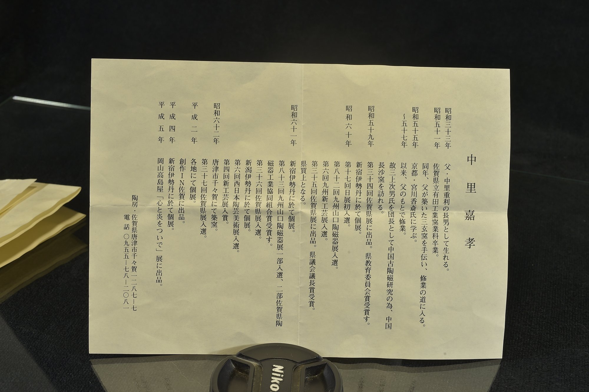 A csésze Yoshitaka Nakazato műhelyében készült. A keramikus 1958-ban ( Showa 33) született Shigetoshi Nakazato legidősebb gyermekeként.