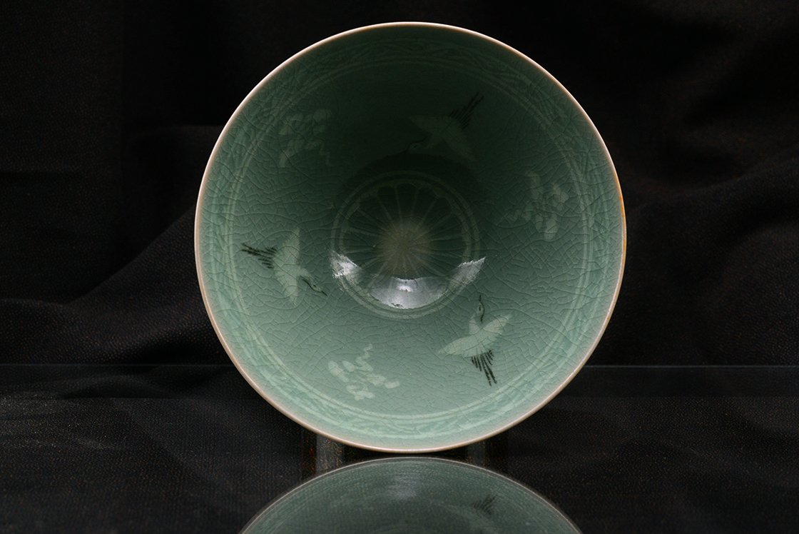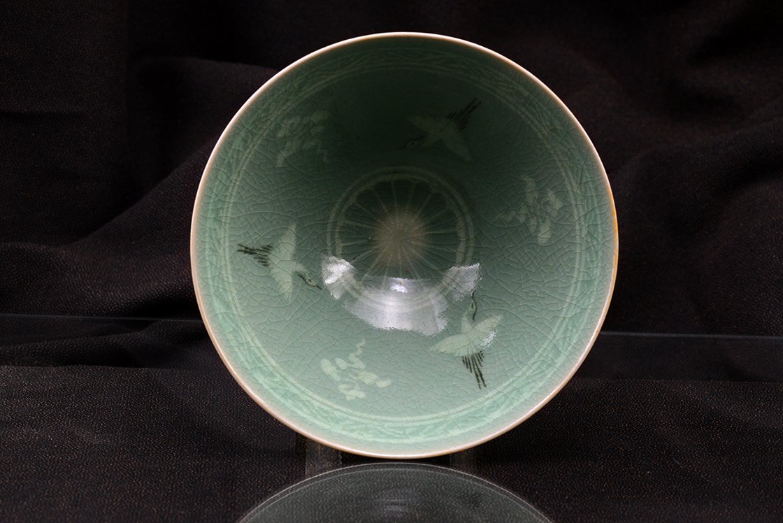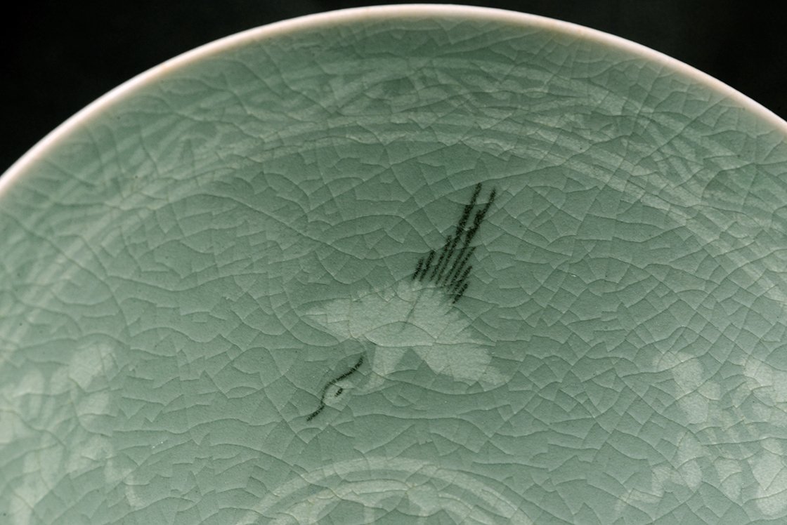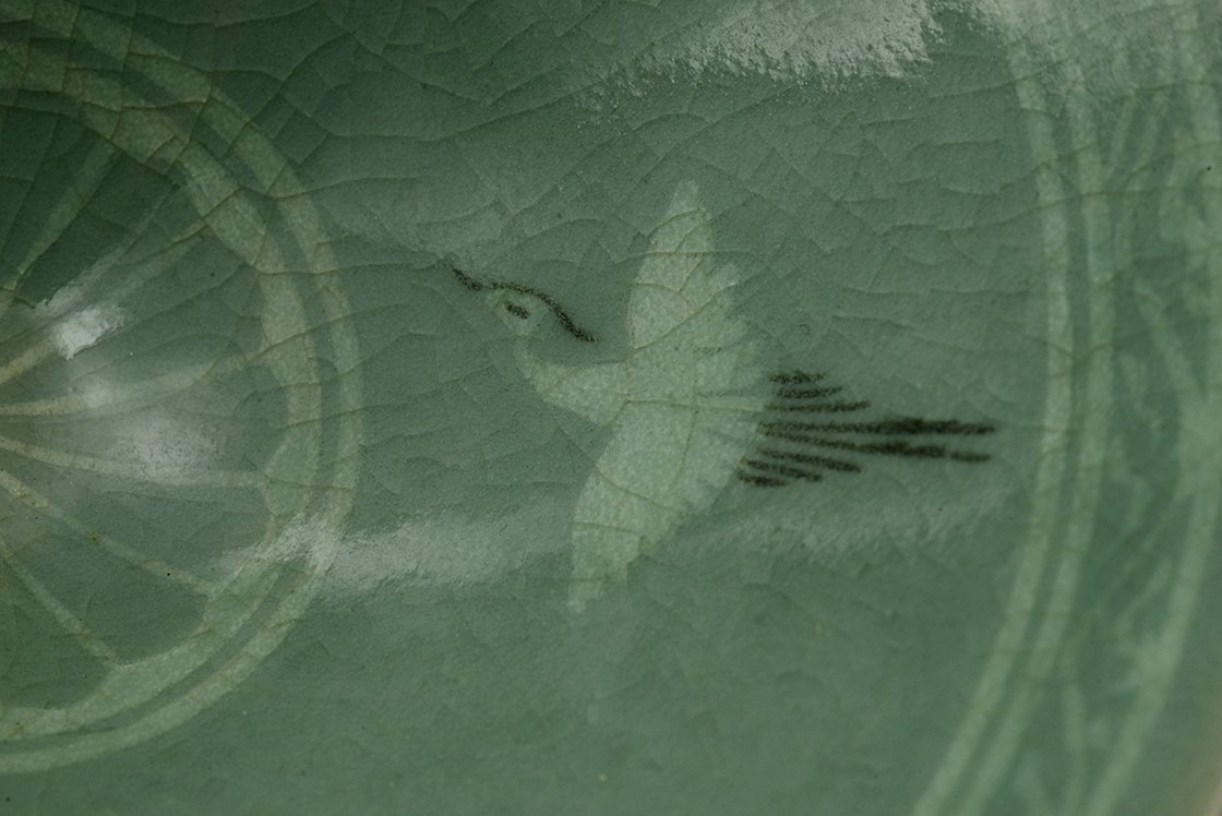 Amikor koreai kerámia kerül a kezünkbe, legyen szó vázákról, csészékről, tálakról, az az érzésünk, mintha megállt volna az idő. Türkizzöld, selymes havas celadon porcalánon felhők és darvak, darvak és felhők, mindig ugyanazok. Az igazság, hogy nem csak ezek, de előfordulhat még lótusz, néha kacsák, bambusz. A celadon alá nyomtatott, vésett, festett motívumok a XIII. századtól tűntek fel és kötelező részei lettek az udvari és nemes arisztokrácia dekorációjának. Később visszaszorult a celadon szerepe és a porcelán vált a gazdag, nemes művészet hírvivőjének, az aláfestésben feltűnt a réz és az arany is. A mai koreai celadon művészet ezekhez a régi hagyományokhoz nyúl vissza a buddhista spritualitás alapmotívumait költöztetve a házunkba. A darvak a fellegek között egyszerű, mégis nemes vonásokkal utal mindarra, amit a madár képe közvetít. Kikacsintva azt mondanám, mindarra, amit az arisztokrácia közvetíteni óhajtott magáról. Nemesség, jóság, jólét, út a paradicsomba. A madár a felhők között az összekötő kapocs a túl és az itt között.